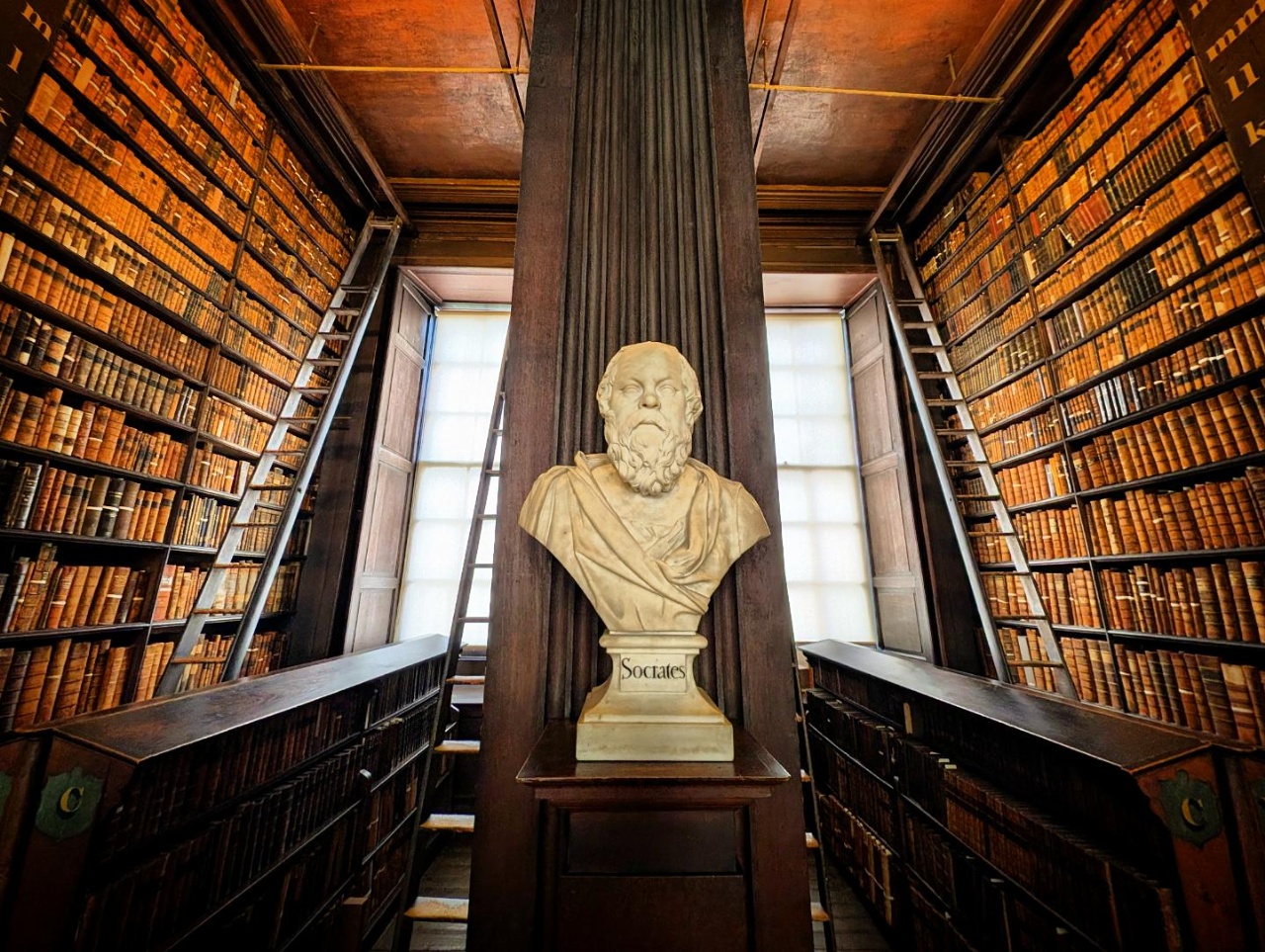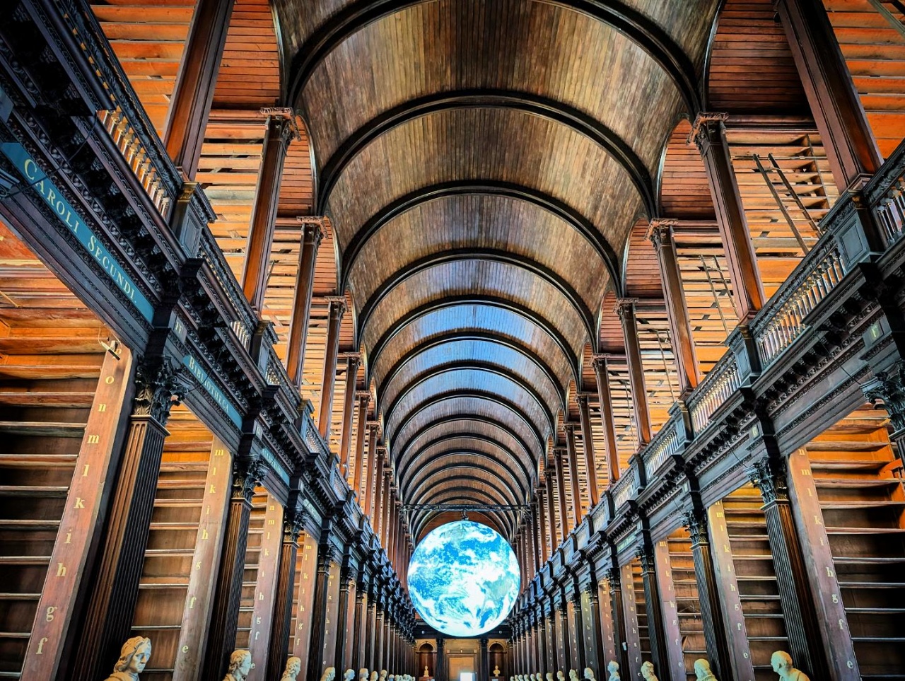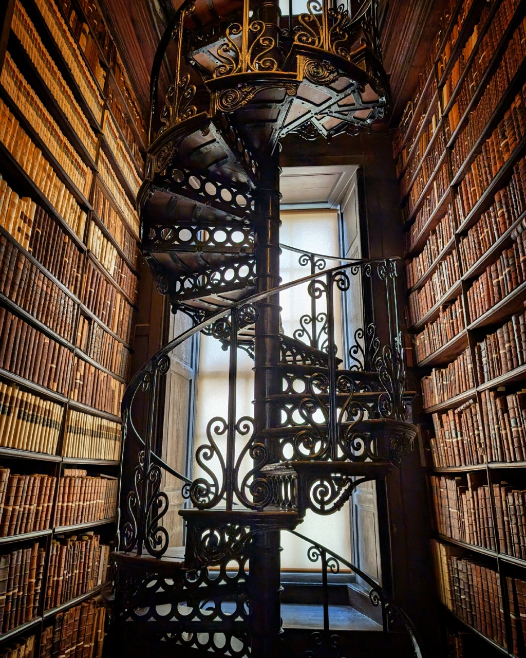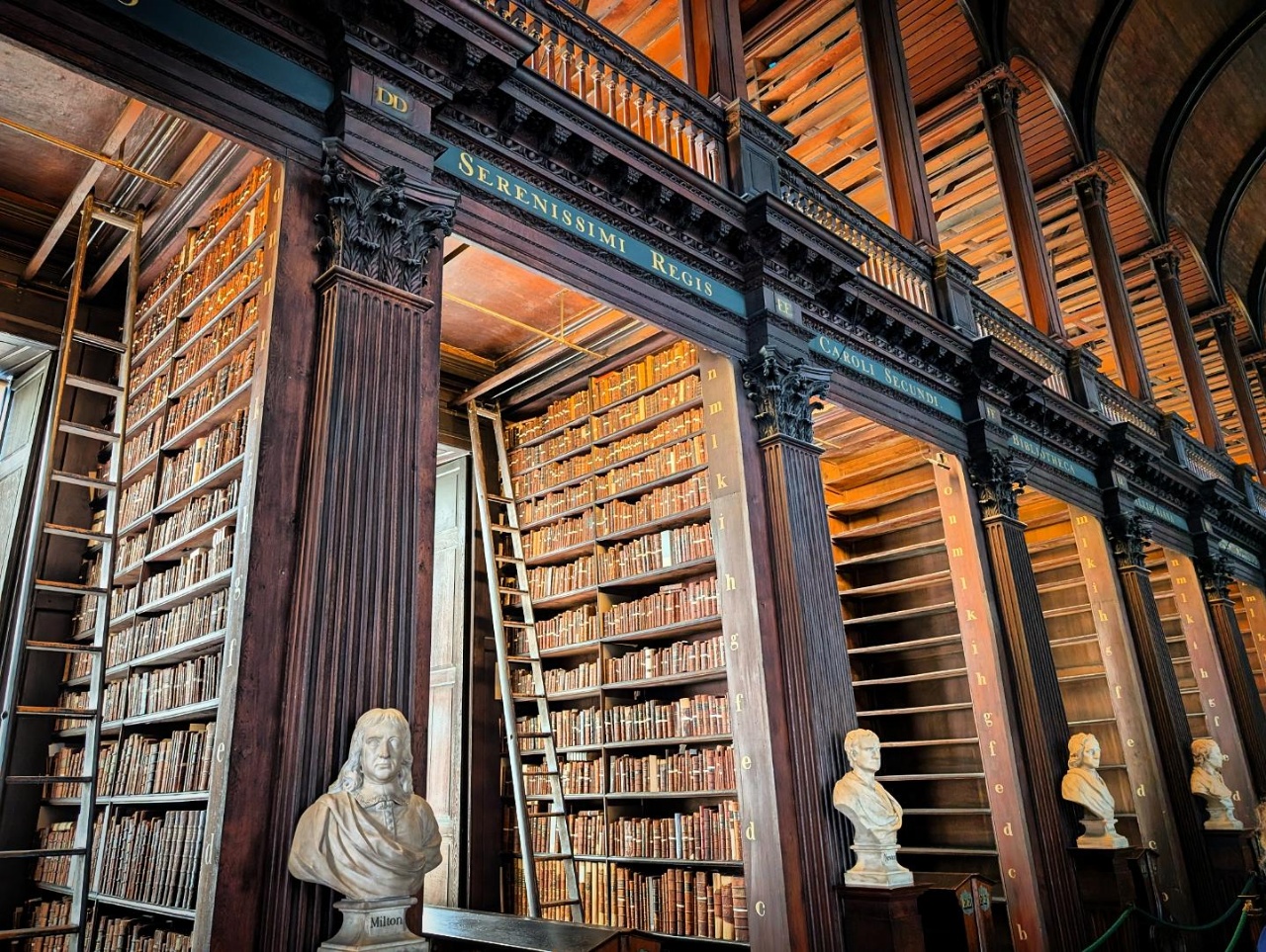On est aussi allé faire un tour à la bibliothèque du Trinity College (l’établissement qui a vu Oscar Wilde étudiant tout de même) qui est un modèle d’ancienne immense bibliothèque avec une belle ambiance de vieille université et de boiseries antédiluviennes. Il y avait un petit côté Belle qui découvre la collection de bouquins du château de la Bête. ^^