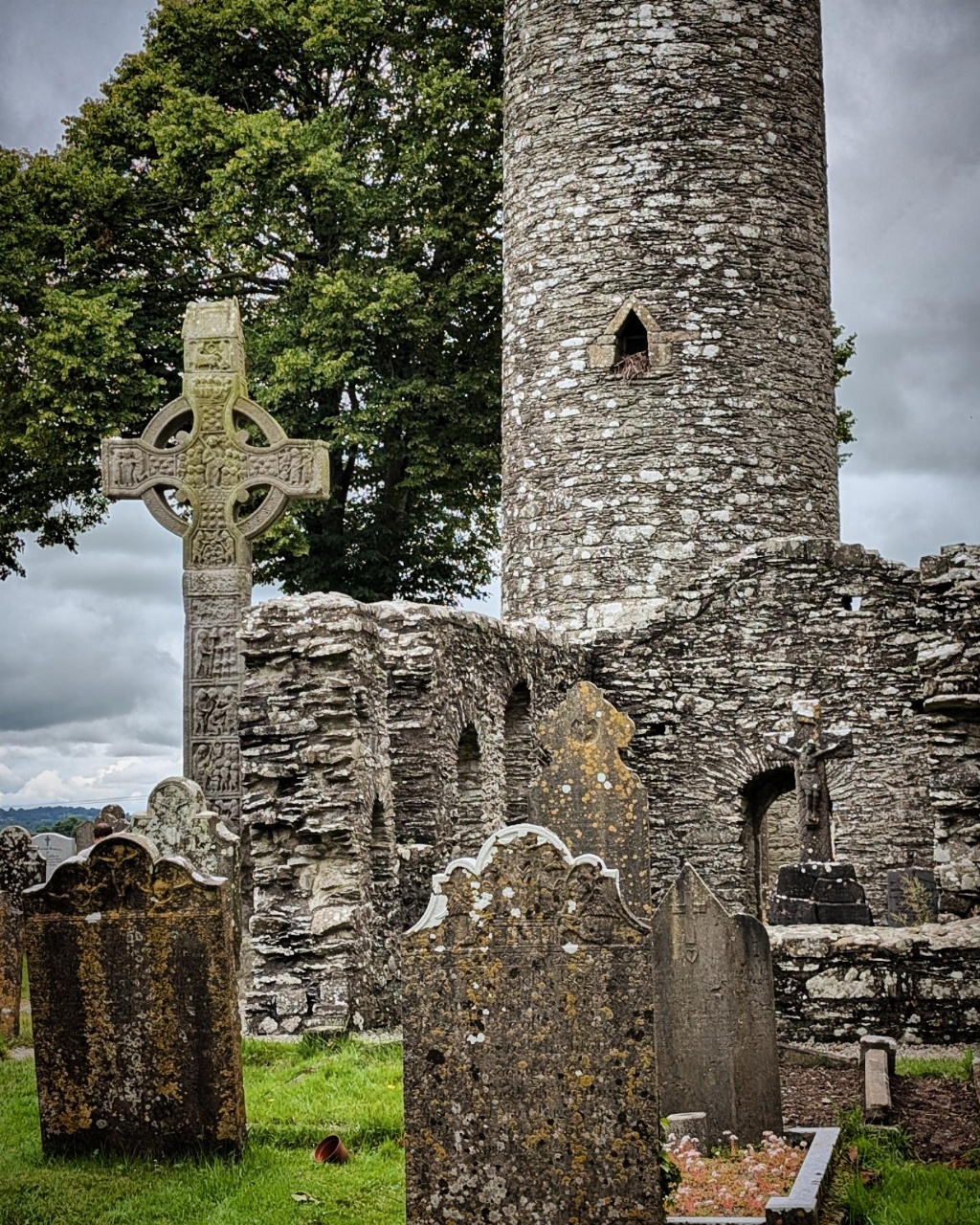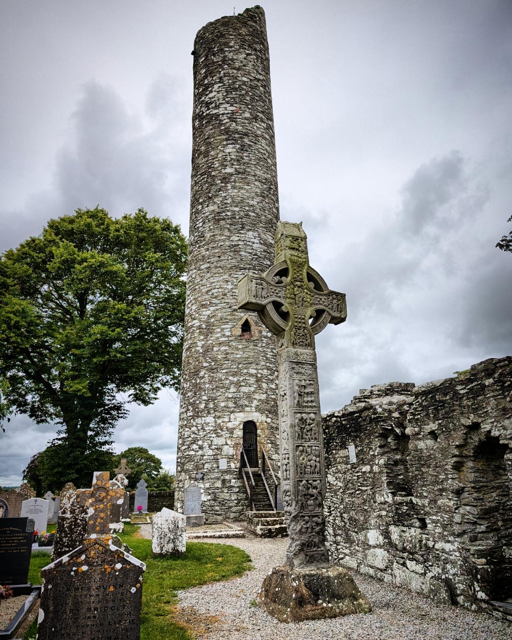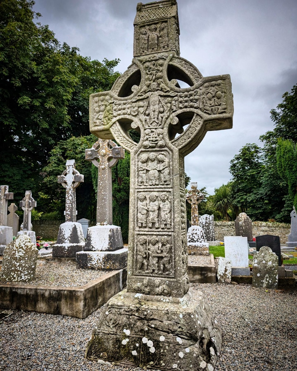 Les plus belles croix celtiques (et les plus anciennes et impressionnantes) sont à 15 minutes de là, à Monasterboice. On y trouve donc des croix et une très grande tour ronde qui servait de guet lors des invasions vikings. Les croix sont les plus anciennes d’Irlande (Xème Siècle) et leurs gravures et sculptures sont assez impressionnantes, tout à fait similaires à des calvaires bretons du 16ème siècle.