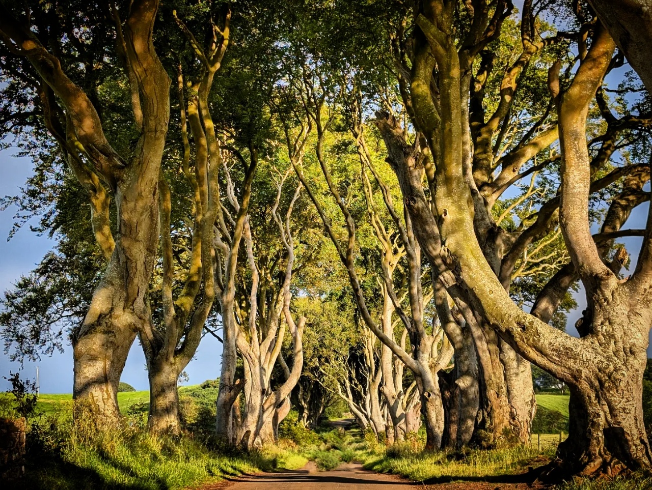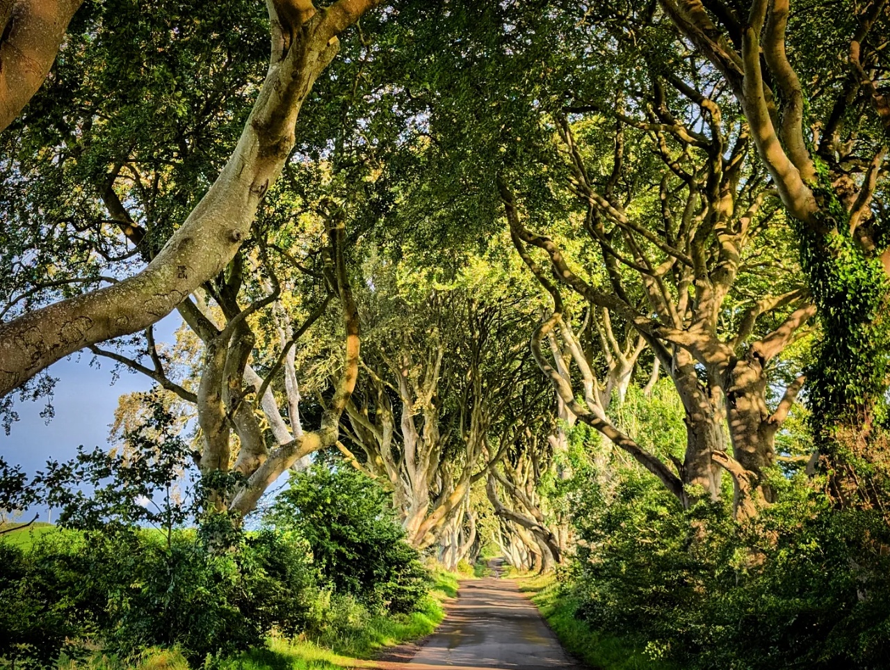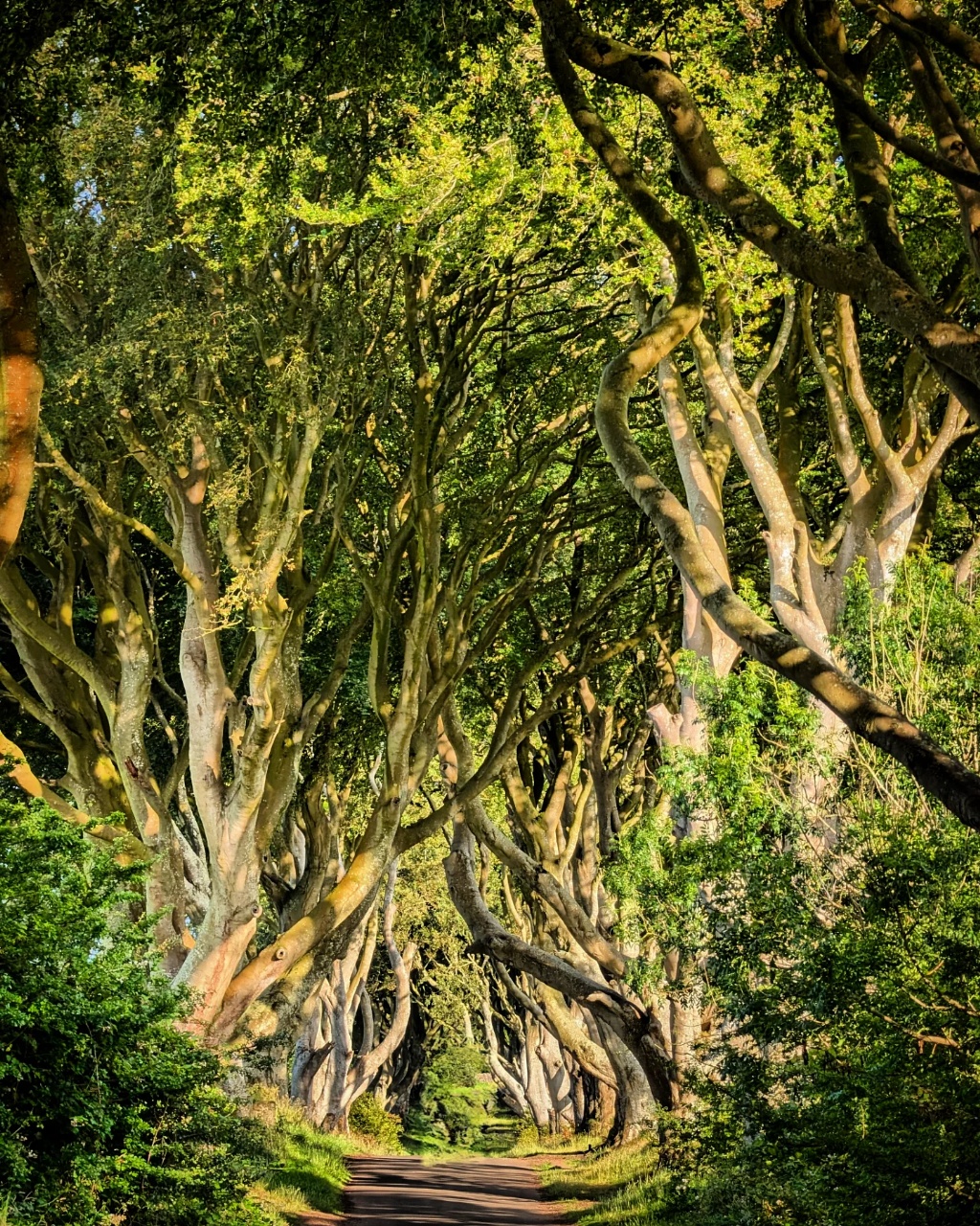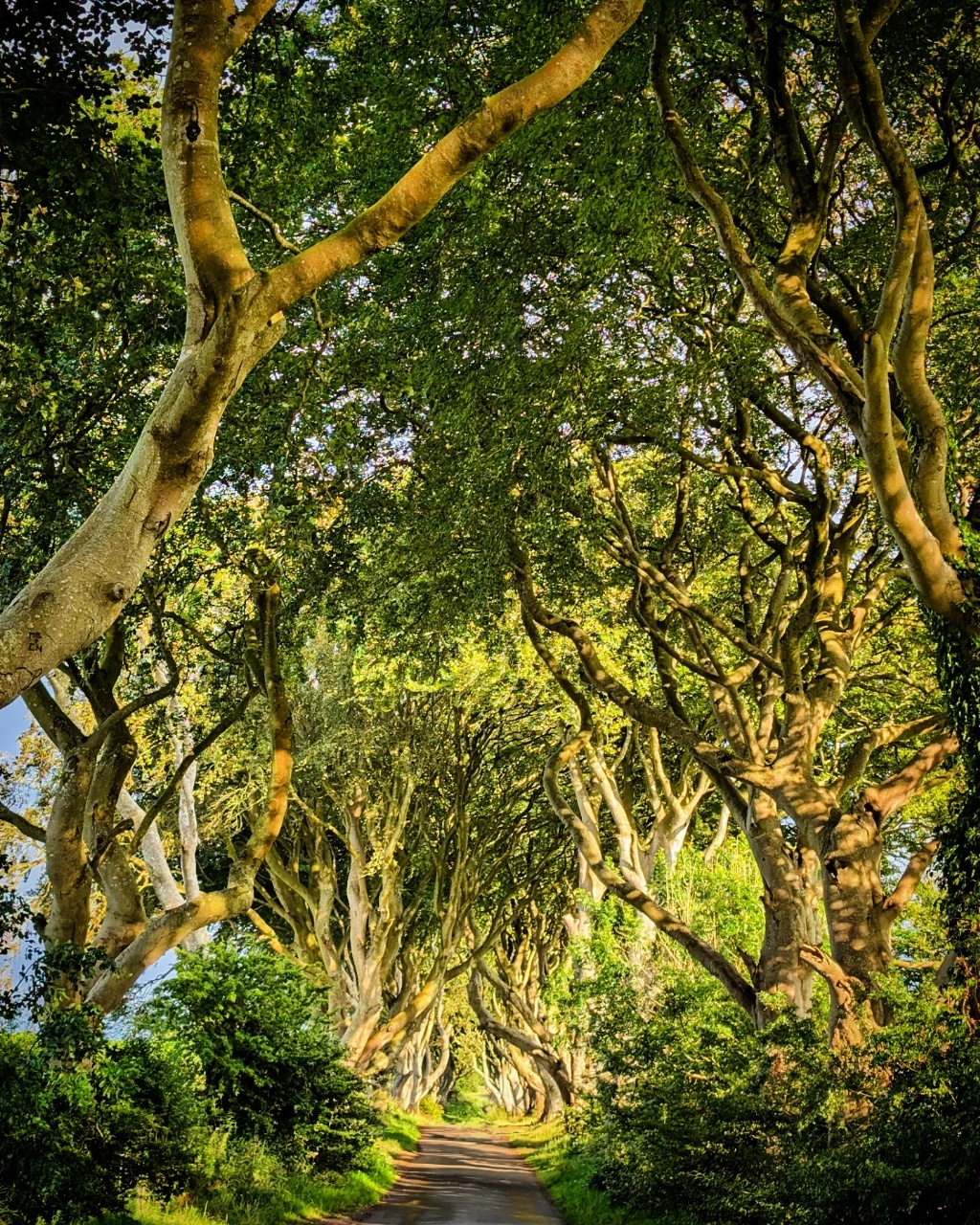 L’idée avant de partir pour l’Écosse, c’était de faire la Chaussée des Géants tout au nord de l’Irlande (du Nord). Pour cela, nous sommes à quelques encablures, et il y aussi une petite curiosité locale puisque l’endroit où nous sommes, Dark Hedges, a servi de décor à deux scènes de Game Of Thrones. C’est juste une succession d’arbre aux branches très développées en un genre très très dramatique !! Et il faut dire que c’est réellement une nature très drama queen !!
