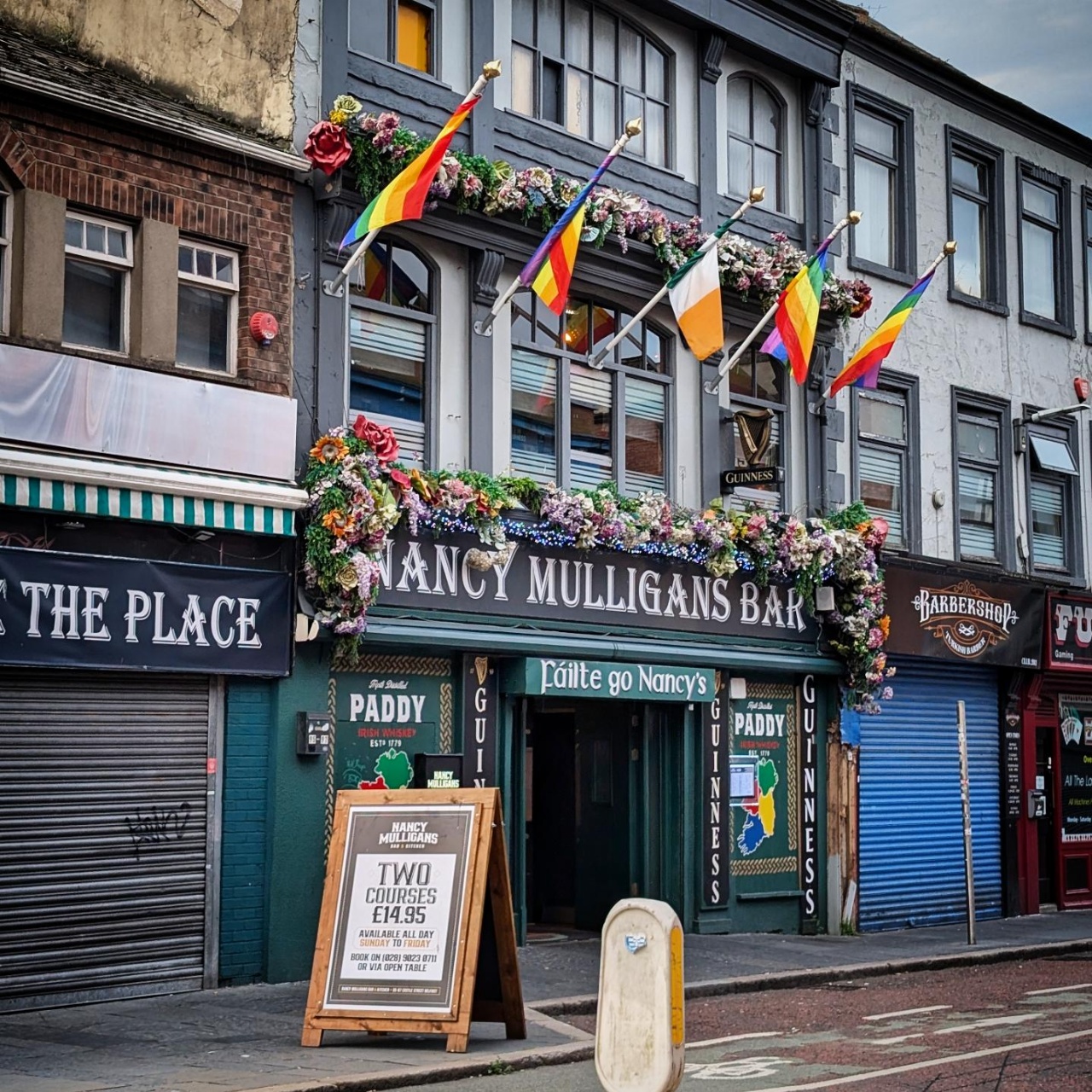 C’est la Pride à Belfast le week-end prochain et c’est très impressionnant de voir toute la ville au diapason. Il y a des drapeaux et messages LGBT friendly absolument à tous les coins de rue, aussi bien les endroits de la communauté, que les immeubles officiels ou des pubs sportifs classiques.