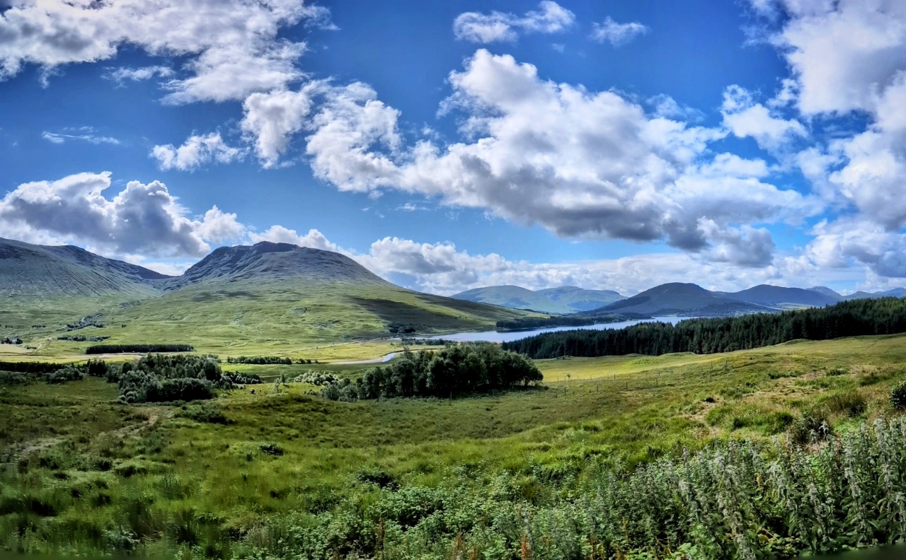 Sur la route pour l’Île de Skye, nous avions plusieurs endroits à voir, mais surtout la vallée de Glencoe qui a une certaine réputation. Le Loch Tulla nous a déjà offert un panorama somptueux.