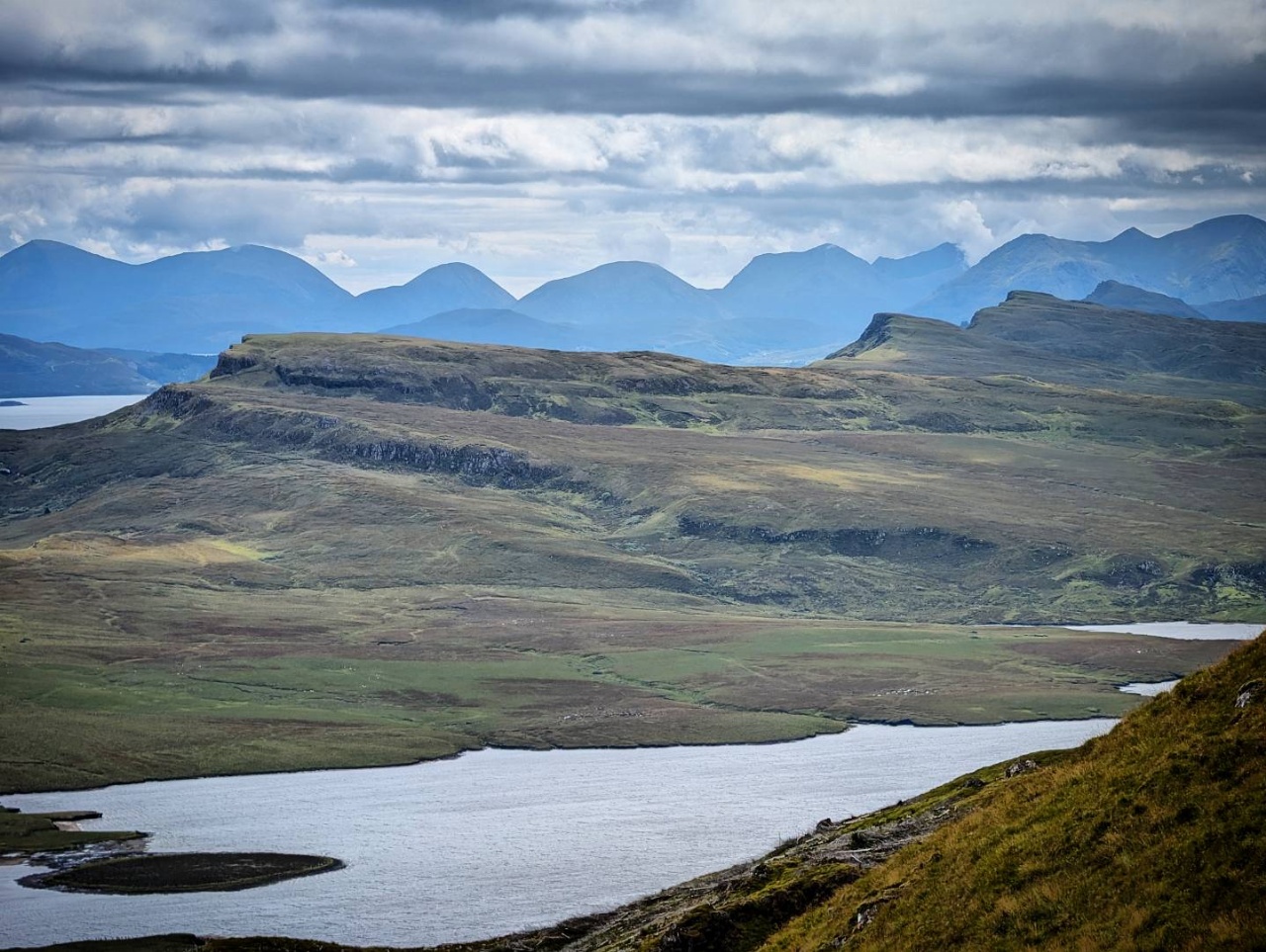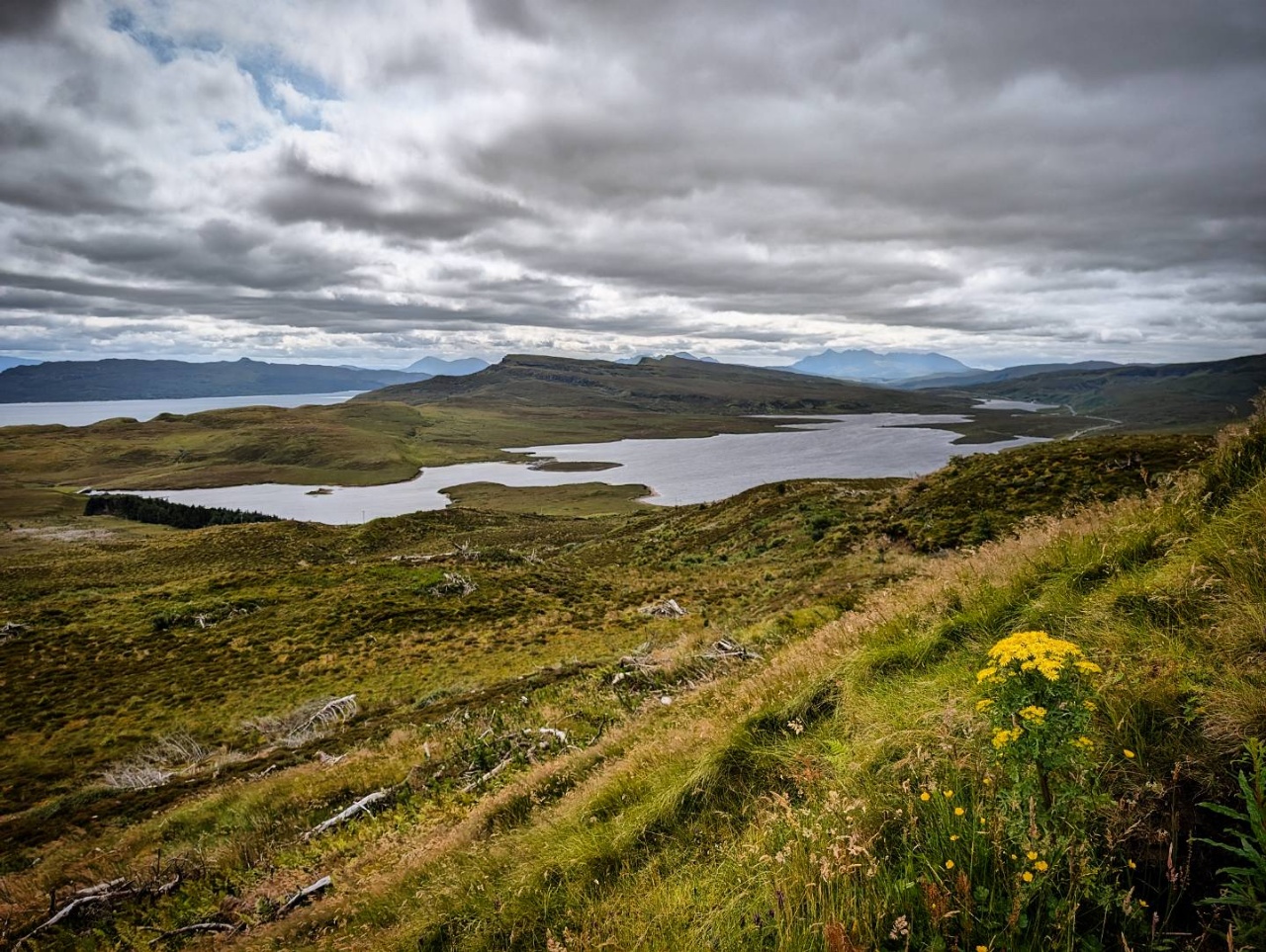 Ces deux jours ont été bien remplis sur l’Île de Skye, ou en plus Alex avait réservé un hôtel particulièrement confortable et luxueux. Nous avons eu de la chance pour le temps, qui est souvent capricieux dans ces régions septentrionales, et malgré quelques gros nuages, nous avons eu droit à de jolis panoramas (maintenant familiers) de lochs et de montagnes.