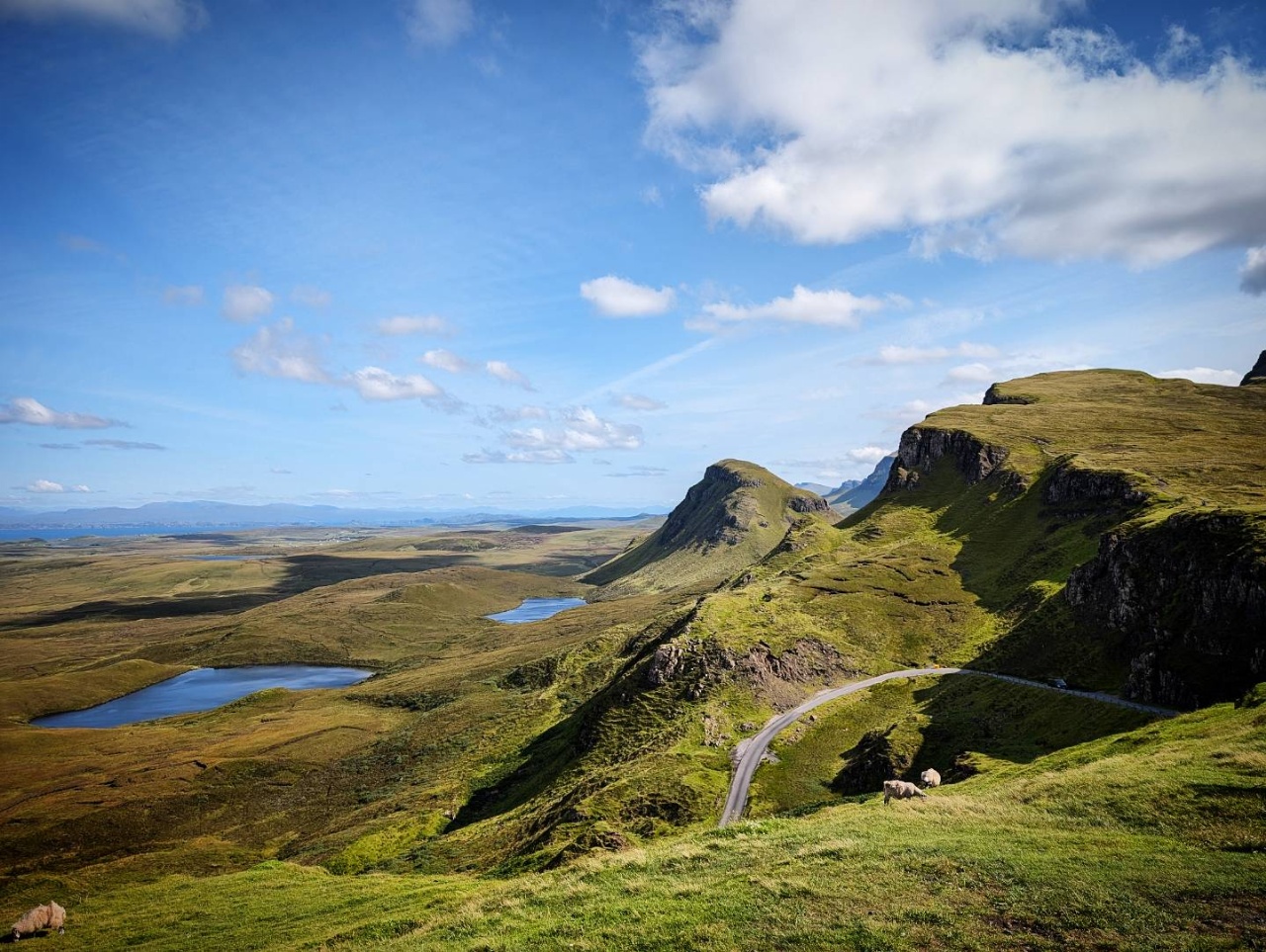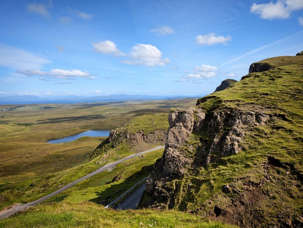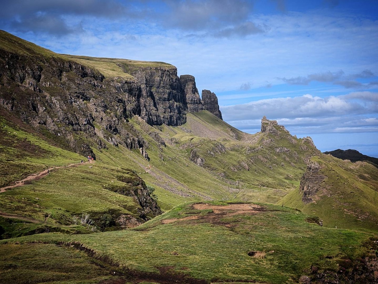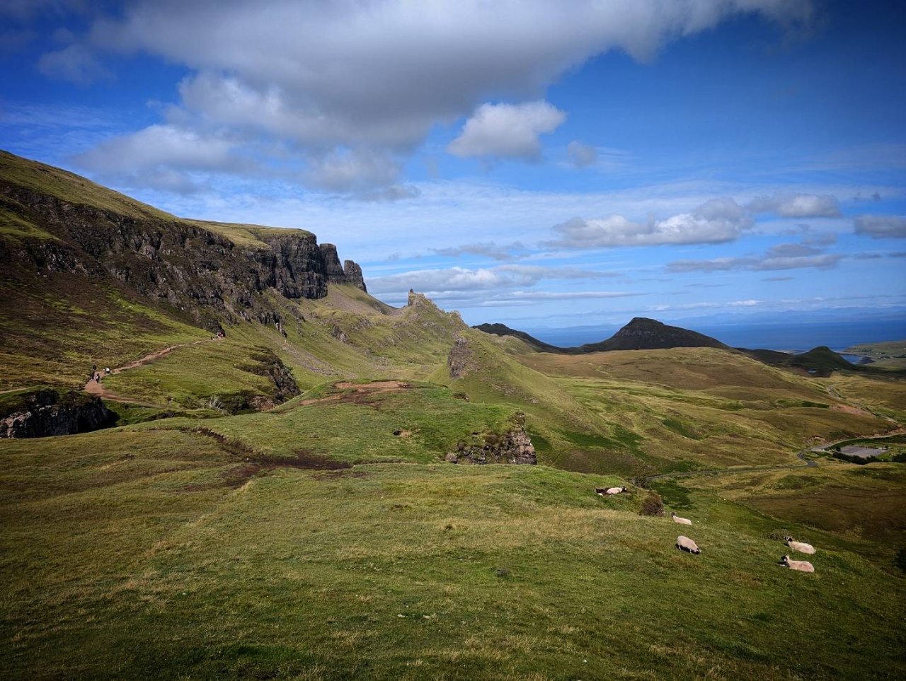 Et globalement des panoramas à couper de souffle avec d’incroyables concrétions rocheuses, dépressions basaltiques, anciennes vallées glaciaires et des tas de trucs érodés bien recouverts d’herbe grasse (et de moutons ^^ ), comme à Quiraing.