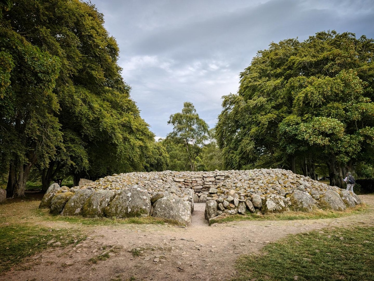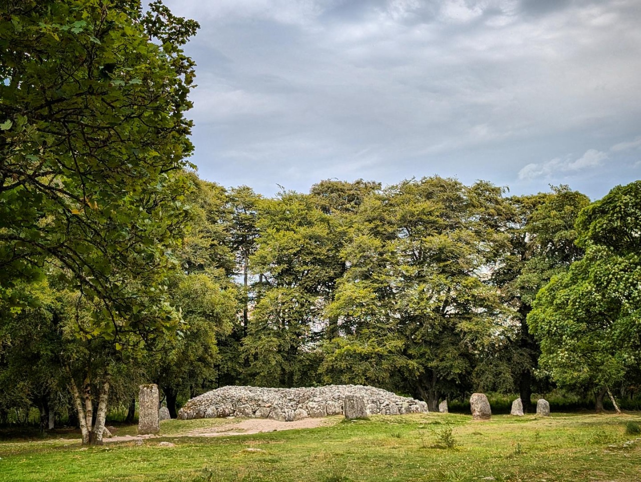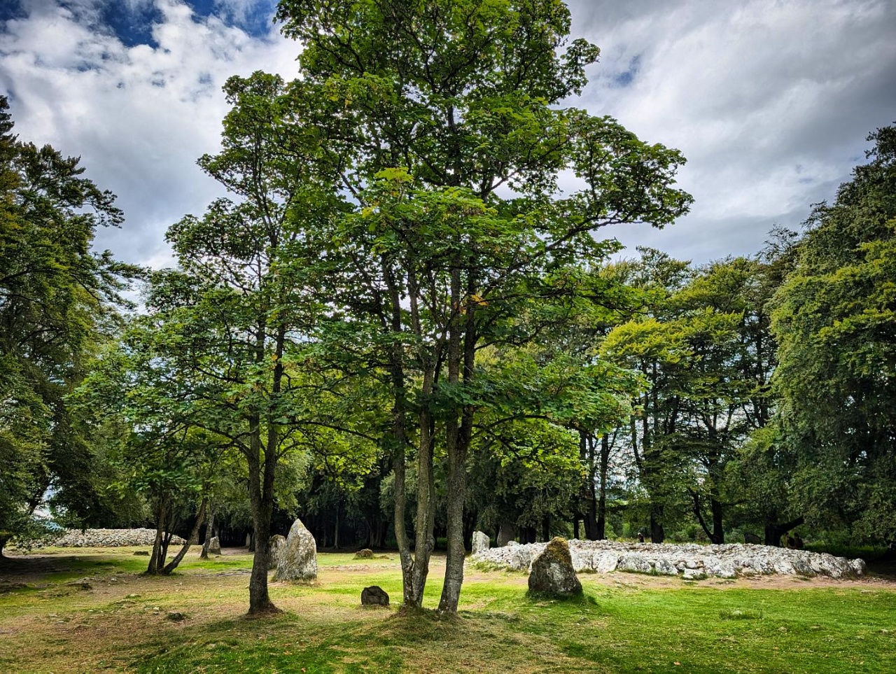 Aux Clava Cairns (inspiration pour Craigh Na Dun de la série Outlander) dans une belle atmosphère celtique. Cela fait un peu penser aux ensembles mégalithiques de la « chaise de César » à Erdeven. Les cairns sont accompagnés d’un impressionnant dispositif en cromlechs (des menhirs en cercle) qui frappent toujours l’imagination, d’autant plus qu’il y a encore des hypothèses sur la correspondance avec le solstice d’hiver et d’autres conjonctions astronomiques.