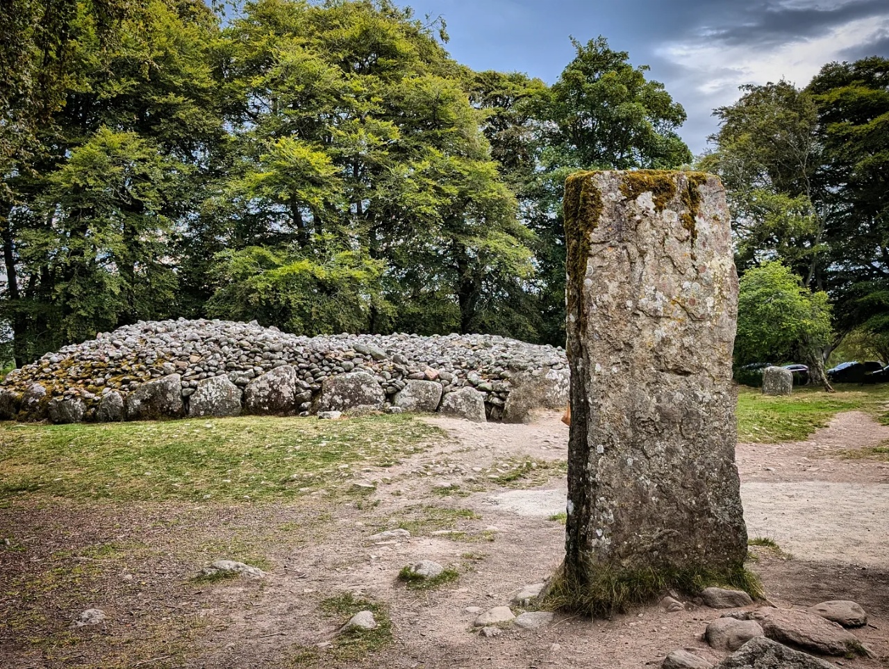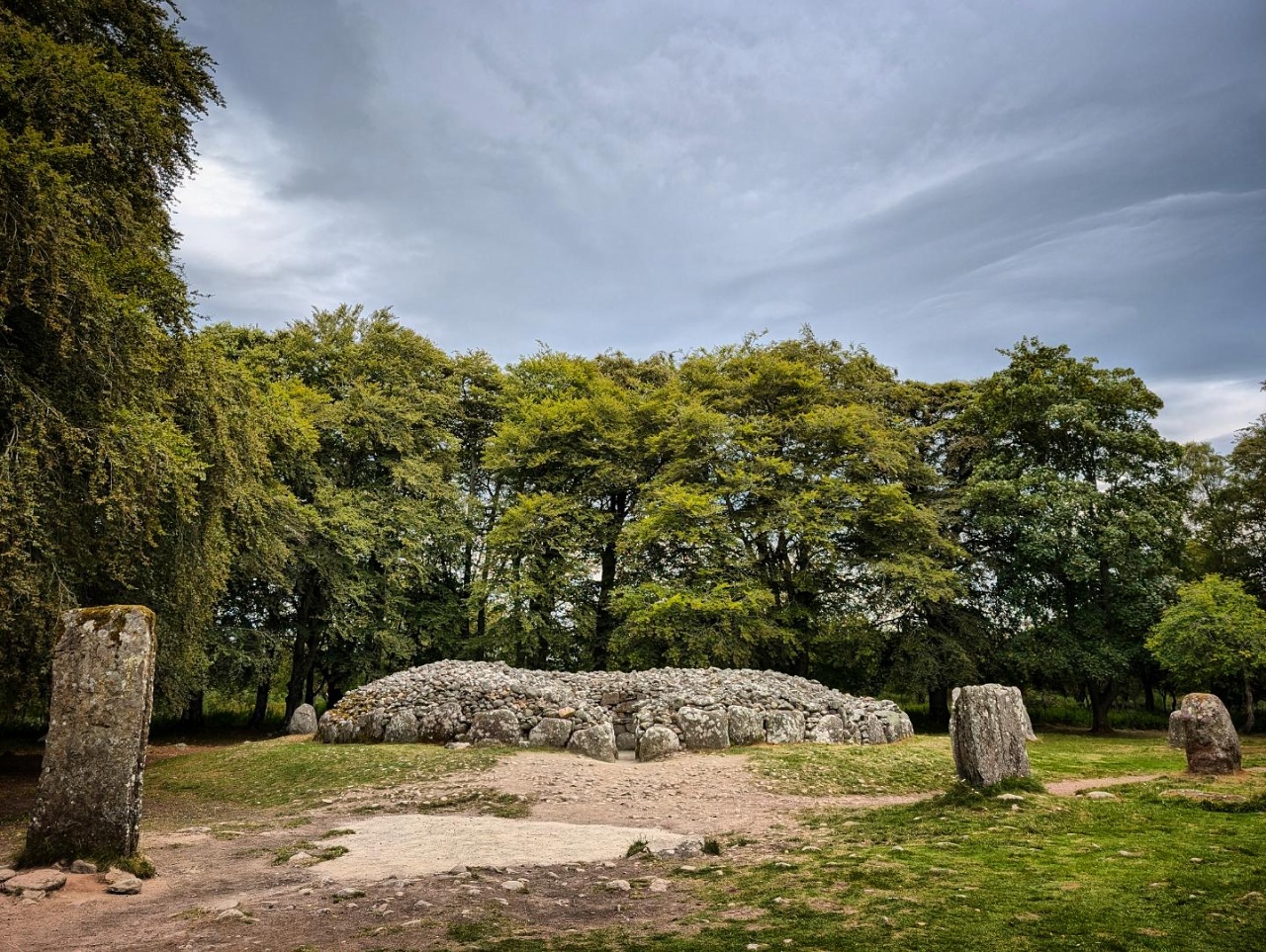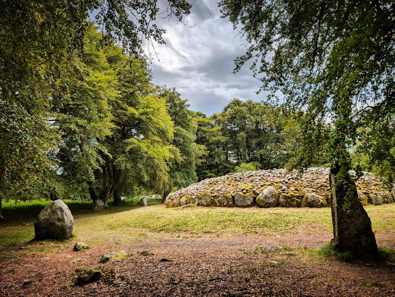 Aux Clava Cairns (inspiration pour Craigh Na Dun de la série Outlander) dans une belle atmosphère celtique. Cela fait un peu penser aux ensembles mégalithiques de la « chaise de César » à Erdeven. Les cairns sont accompagnés d’un impressionnant dispositif en cromlechs (des menhirs en cercle) qui frappent toujours l’imagination, d’autant plus qu’il y a encore des hypothèses sur la correspondance avec le solstice d’hiver et d’autres conjonctions astronomiques.