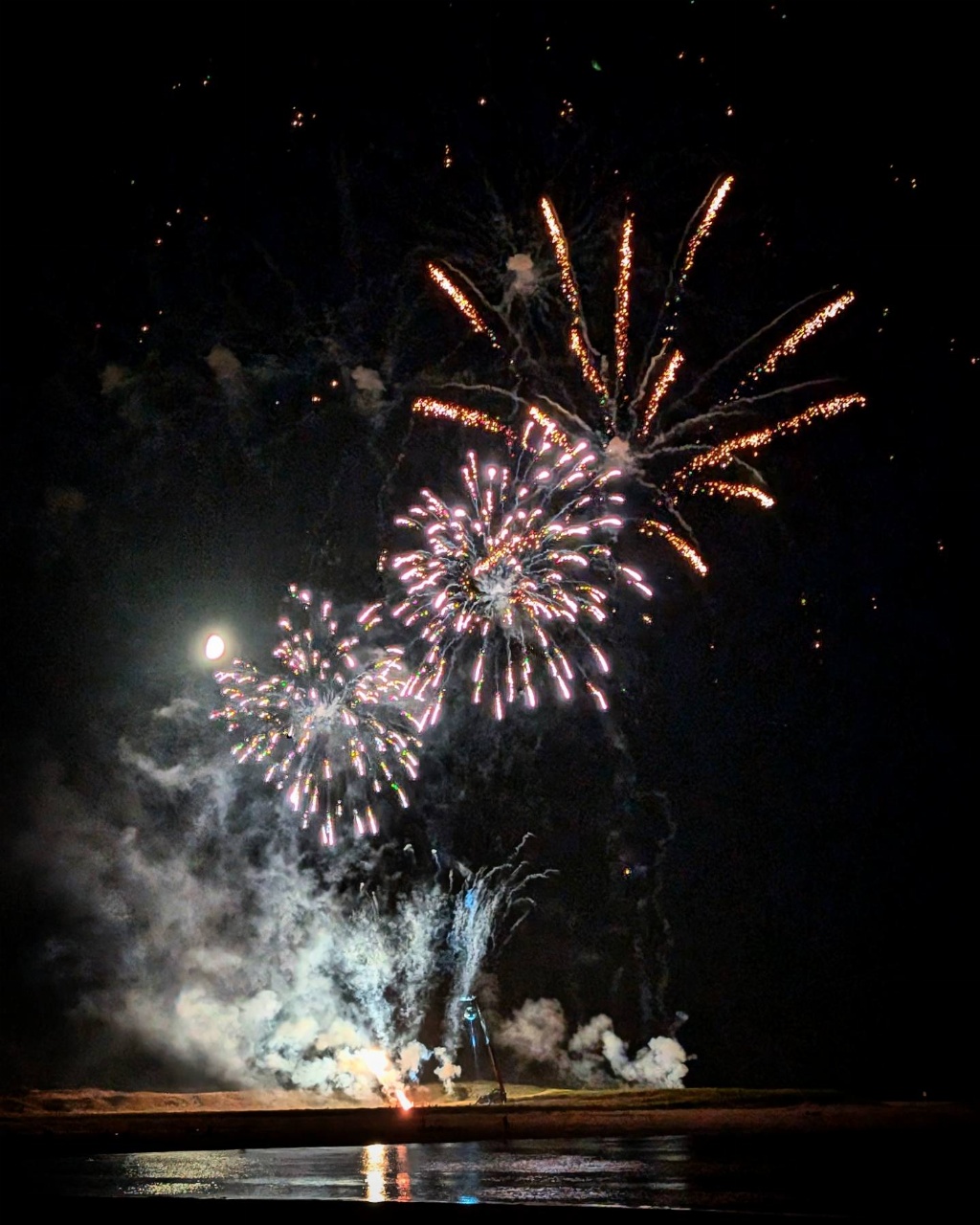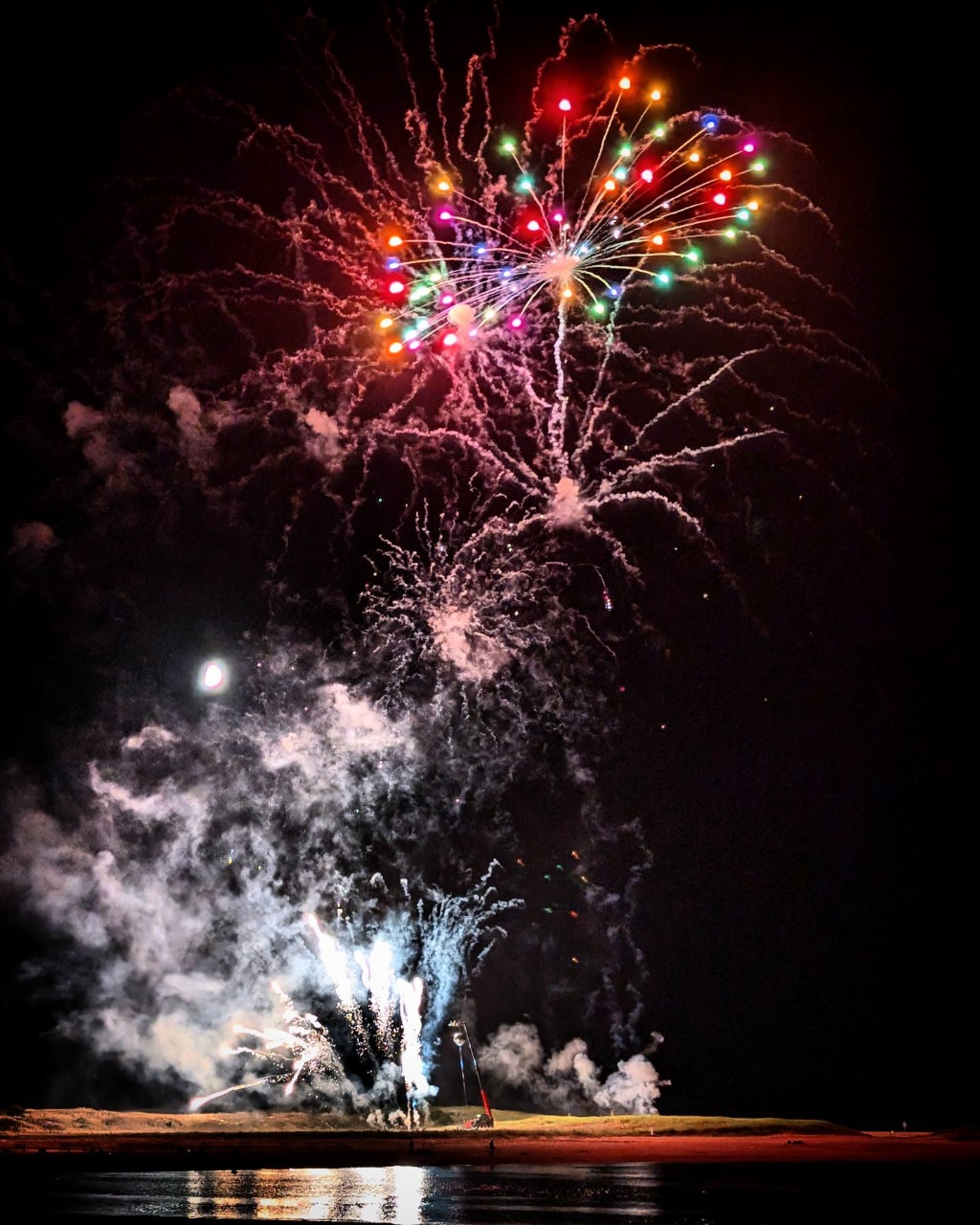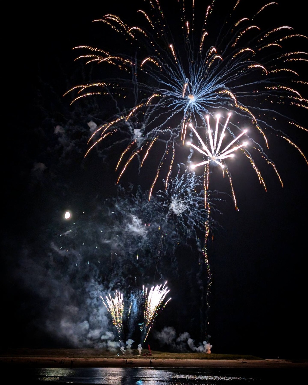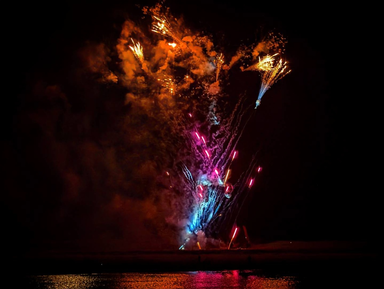 L’endroit de choix pour ce feu d’artifice est absolument magnifique puisque c’est à l’embouchure de la Laïta, lorsqu’elle se jette dans de derniers entrelacs très amples dans l’océan. C’est un endroit singulier, avec de belles plages, mais des bancs de sable très mouvant, un mélange d’eau de mer et d’eau douce (plus ou moins alluvionnaire et vaseuse), et des effets de marée qui induisent des courants effroyables (il est vraiment déconseillé d’y nager, au-delà de barbotter).