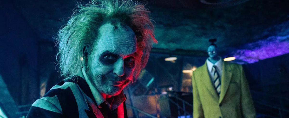 Ce qui fonctionne surtout dans le film, c’est son rythme qui est très chouette, et les gimmicks de Beetlejuice très conformes au premier film, tout aussi dingues, gores et tordus. Mais malgré tout, on voit bien les 35 ans de plus chez Michael Keaton, et j’ai été dérangé par son maquillage très visible, beaucoup plus que pour le premier film. La DA des morts et des décors est vraiment burtonienne à souhait, et ça ça fonctionne super bien. Les effets se veulent un peu vintage et old school, et malgré tout ils ont complètement raté les effets des « vers des sables » avec des procédés juste affreux.