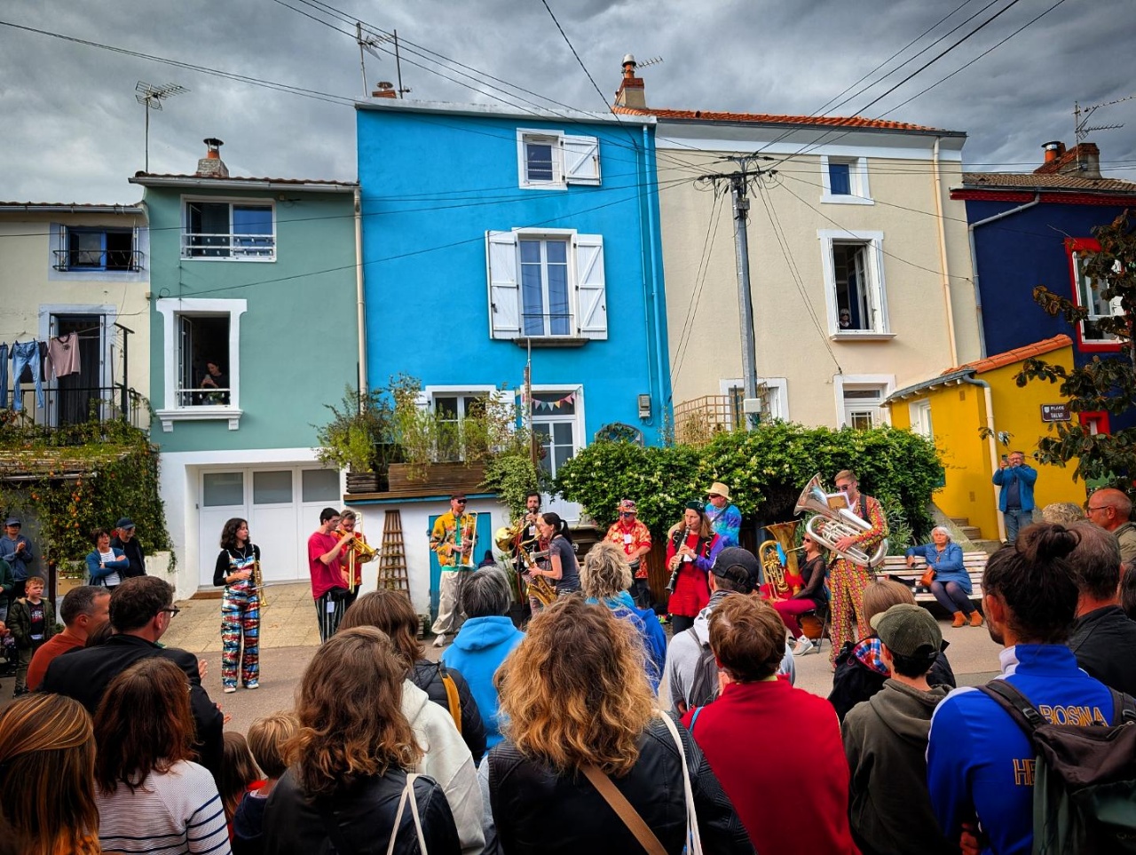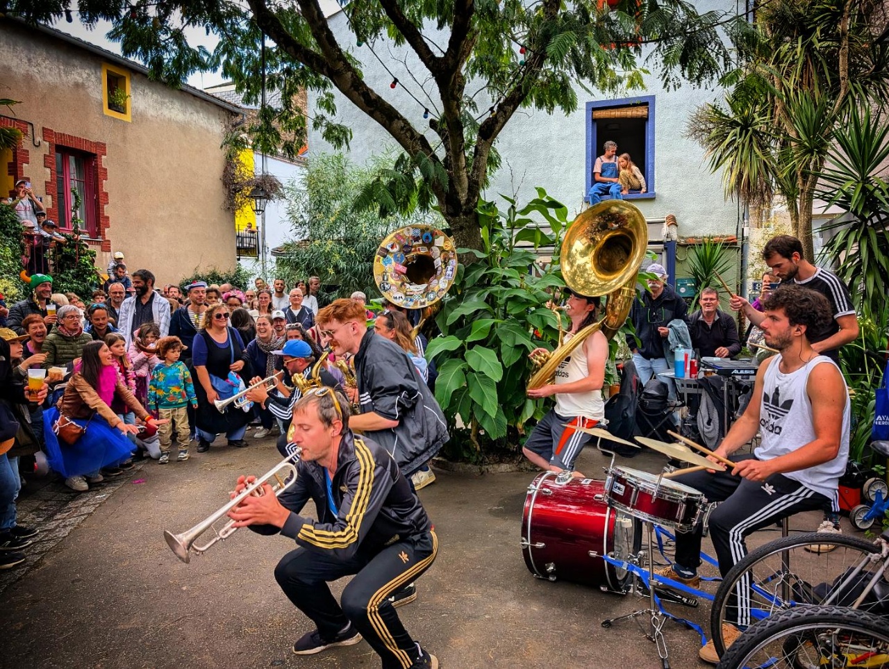 J’aime beaucoup les fanfares, j’adore les cuivres et l’ambiance que cela met dans les rues. Et aujourd’hui c’était Les Fanfaronnades, un festival dédié aux fanfares à Rezé (en face de Nantes, de l’autre côté de la Loire) !! Dans l’après-midi, c’était un « lâcher de fanfares » avec plusieurs groupes qui se présentaient dans les rues, impasses et placettes du village de Trentemoult.