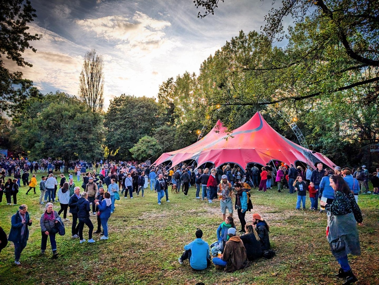 Le lieu même du festival est un parc attenant avec des chapiteaux et différents stands, c’était hyper sympa et vraiment très fréquenté avec des gens qui dansent un peu partout. Super cool !!!