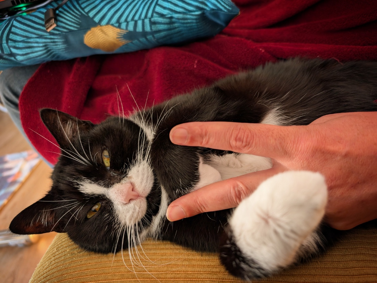 Tout à l’heure, c’était au bonheur des chattes sur le canapé. Avec Sookie coincée entre nous deux, et Arya juste à côté totalement affalée sur une couette en boule. La situation par-faite !