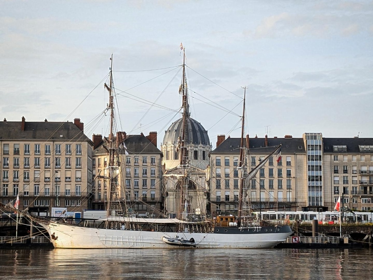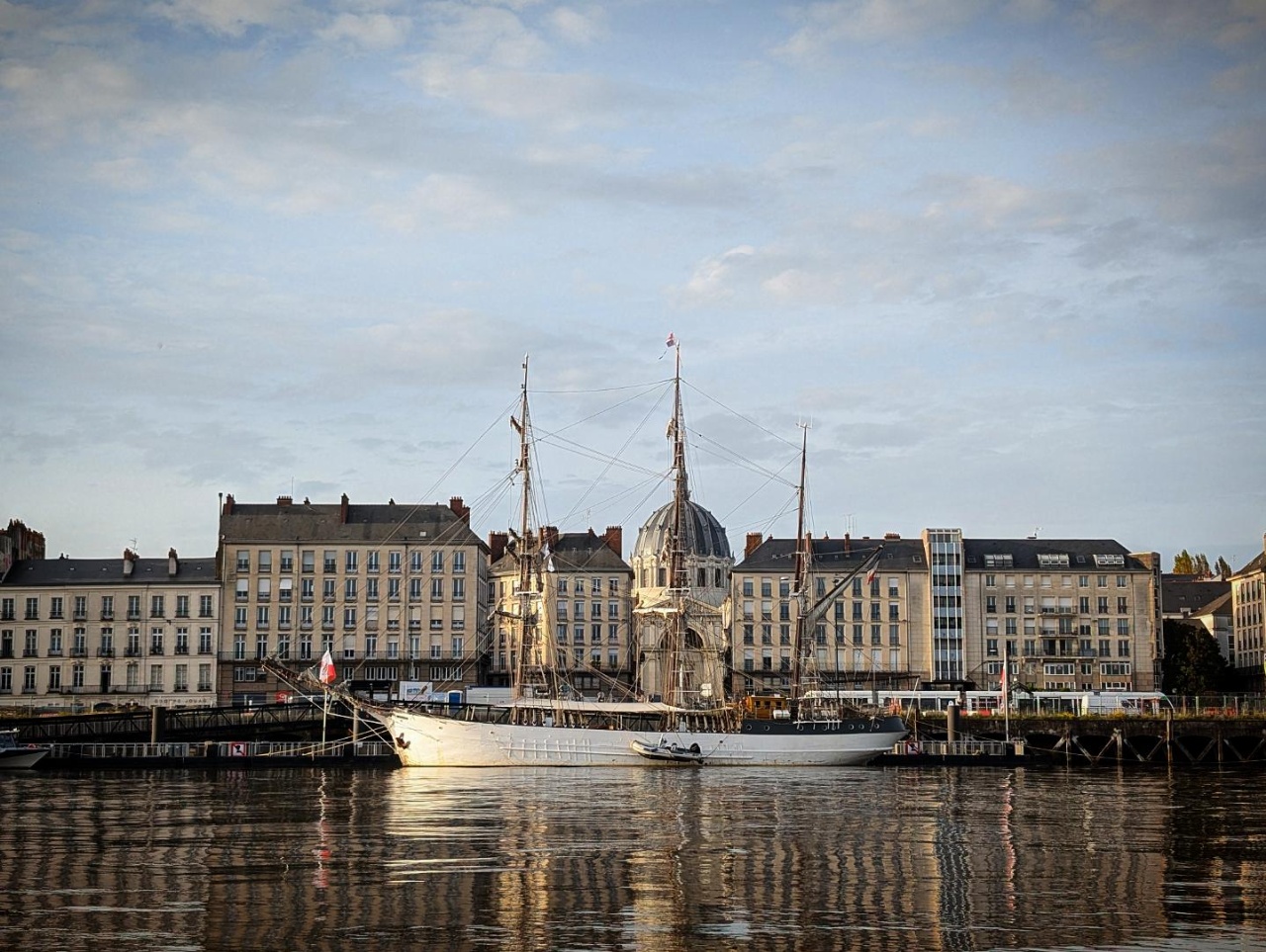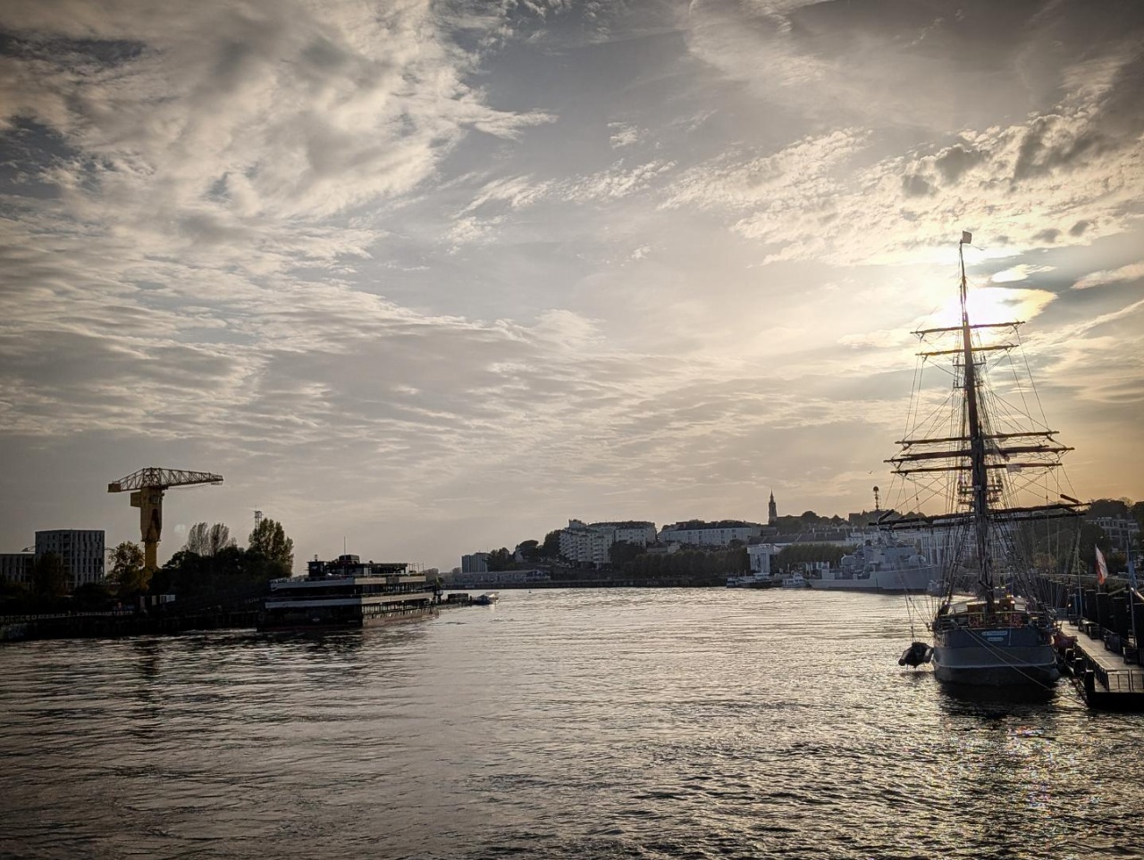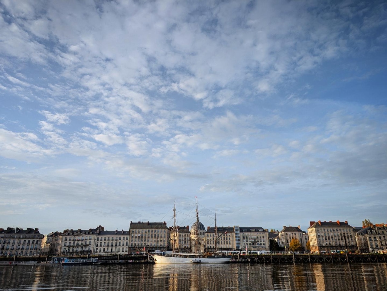 Aujourd’hui, j’étais en réunion juste à côté de la maison, sur l’Île de Nantes, et c’était vachement agréable. J’aime beaucoup cet endroit avec le Parc des Chantiers et ses deux grues monumentales, les anneaux de Bouchain et Buren, ou bien la vue sur le quai de la Fosse (où un joli trois-mâts barque de 1948 qui s’appelle le Français de Saint Malo) et Notre-Dame-de-bon-Port. J’en ai profité pour faire quelques photos en y allant ce matin, et en rentrant en flânant gentiment jusqu’à mes pénates.