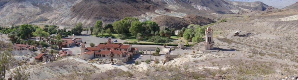 Il y a quelques routes qui mènent aussi à des îlots de vie en dehors des villages modernes. On peut tomber sur d’anciennes mines de bauxite et des infrastructures minières sommaires, ou bien comme ci-dessous sur Scotty’s Castle (1922) dont l’histoire est vraiment étonnante.