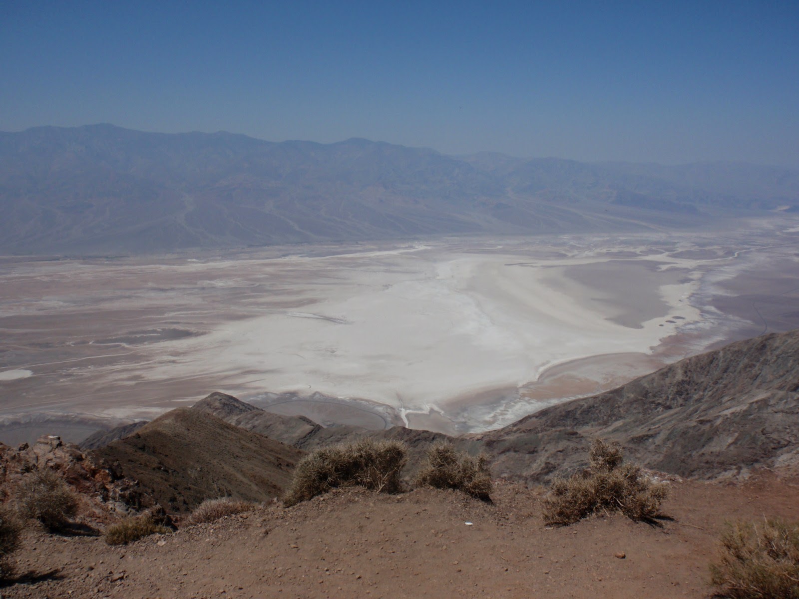 Quand on était à Furnace Creek en plein mois d’août 2009, les locaux s’amusaient à nous dire que seuls les français s’aventuraient en cette saison. Et c’est vrai que c’était une chaleur à crever, il suffisait de sortir de la voiture ou de l’hôtel (climatisé à 16°C évidemment, c’est les USA) pour sentir immédiatement toute humidité vous quitter. On ne transpire même pas une goutte, et les vêtements ne se mouillent pas de sueur, car tout est immédiatement évaporé. Il y avait (dans la série des hérésies américaines) une piscine à l’hôtel, et l’expérience était étonnante. Vous sortez de l’eau, et vous êtes secs sans serviette, en deux secondes hop ! Donc ce n’est pas de la blague, c’est un lieu basiquement dangereux et néfaste pour les humains que nous sommes.
