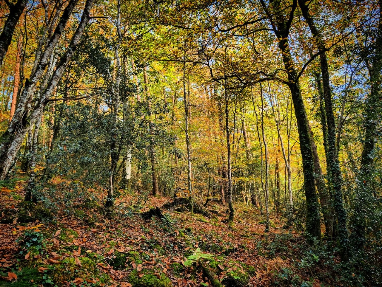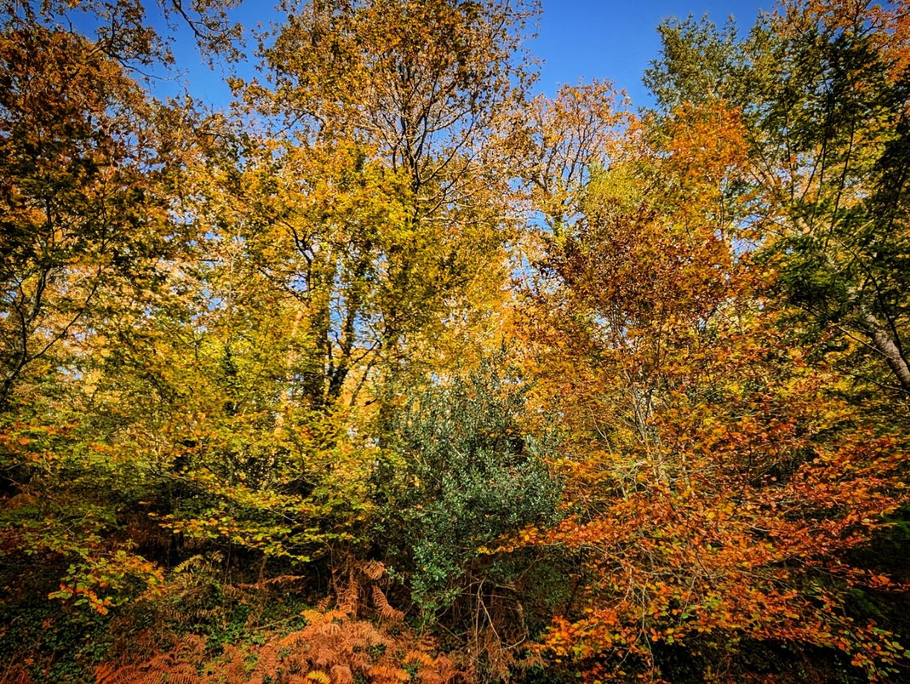Je vous avais bien dit que j’irais faire un tour en forêt, et en effet les couleurs sont un peu dingues !!! Jaune, rouge, orange et toutes les nuances jusqu’aux feuilles mortes bien marronnasses. J’adore l’odeur de l’humus en formation, cela donne au sous-bois une curieuse odeur doucereuse qui sent la terre et les champignons. Tout ça c’est de la décomposition et de la pourriture bien sûr, mais c’est loin de puer la mort. ^^