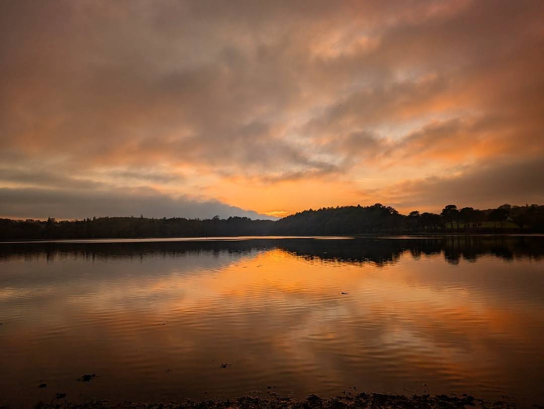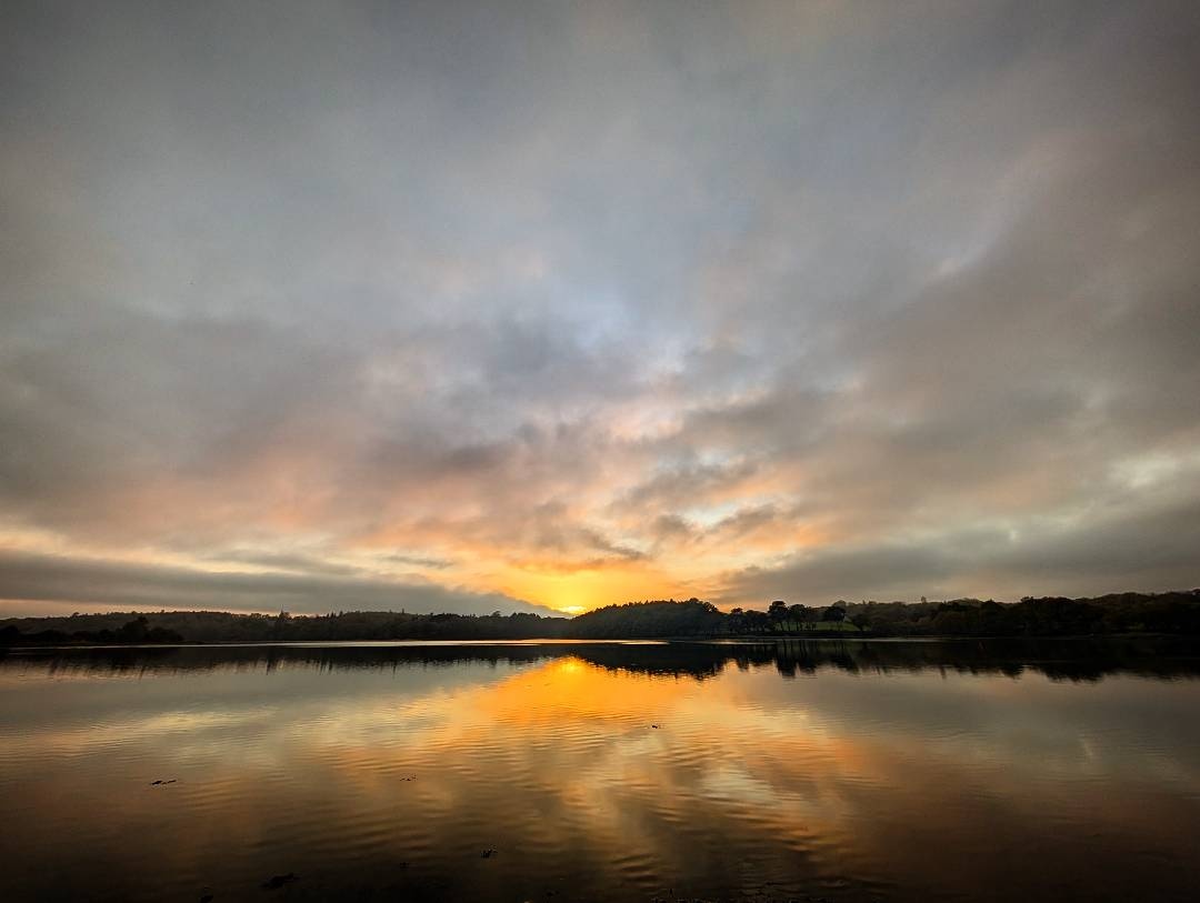 Et à quelques minutes de là, en s’arrêtant à côté d’un méandre de la rivière qui fait penser à un immense lac, on a tenté de se faire un coucher de soleil. Le truc s’est vite mué en nuages gris, mais ne boudons pas notre plaisir, c’était vraiment chouette comme tout.