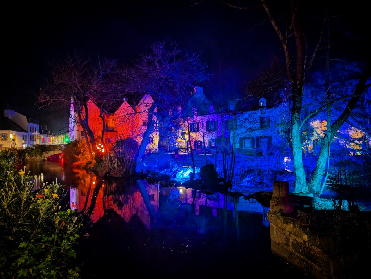 La sortie traditionnelle de fin d’année pour profiter des éclairages nocturnes de Pont-Aven. Il pleuviotait et c’était dimanche soir après 20h, donc il n’y avait pas un chat, et c’était super agréable de s’y promener (ça peut être carrément blindé de touristes à certains moments).