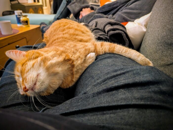 Et ma petite Sookie m’accompagne sagement depuis ce matin, en télétravail sur un bureau dans une chambre, sur une couette bien chaude en me jetant des petits regards invitant à la sieste.
