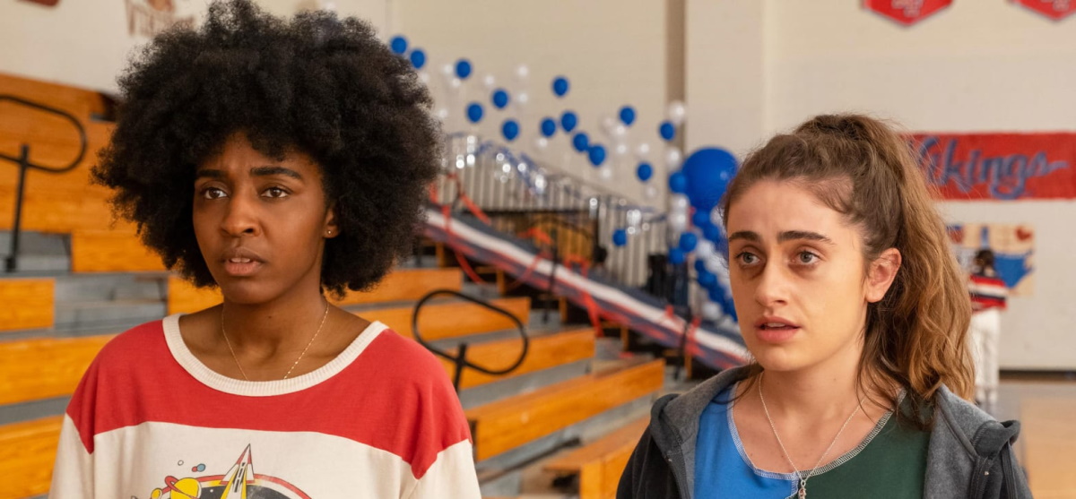 L’histoire c’est celle de PJ (Rachel Sennott) et Josie (Ayo Edebiri) qui sont deux goudous lycéennes en galère de meuf (elles n’ont encore jamais eu de relation sexuelle). Alors qu’elles naviguent dans la rude existence d’ados queers dans un lycée où elles sont largement considérées comme les loseuses du coin, elles ont chacune un crush (hétéro évidemment) et parfaitement insensibles à leurs charmes. Elles commencent à nourrir leurs réputations de filles dures à cuire qui ont passé du temps en « juvie1 » (ce qui est affabulé), et elles ont l’idée de mettre en place un cours de self défense pour les filles de l’école (avec l’aide d’un prof à mourir de rire). Le truc se transforme rapidement en fight club où elles se battent vraiment, mais ça rapproche tout ce petit monde, et les deux héroïnes y gagnent un certaine réputation.
