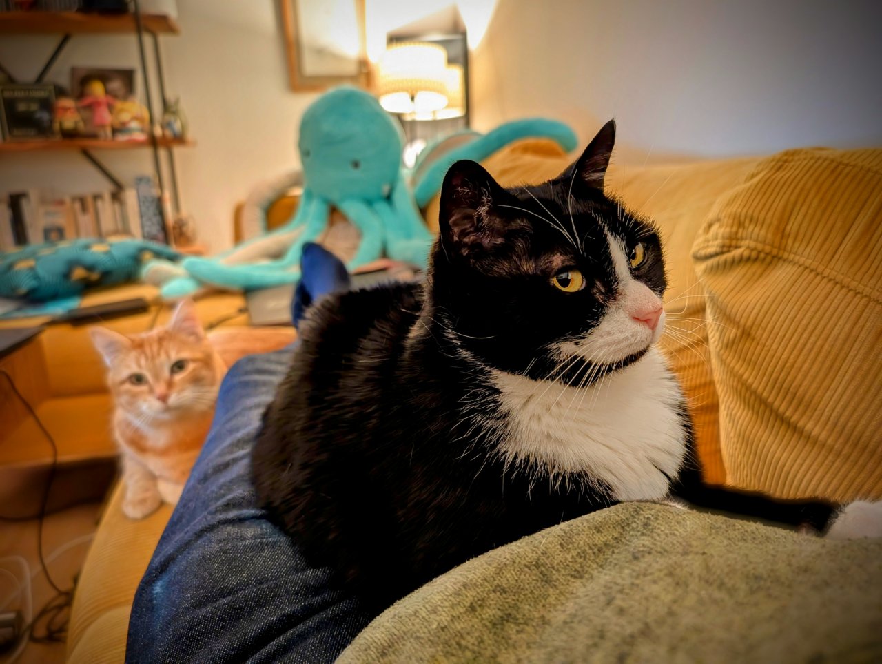 Tous les soirs, quand je rentre du boulot, je me jette souvent sur le canapé pour quelques minutes. Zoup !! L’une puis l’autre, toujours les mêmes, dans le même ordre, arrivent sur moi.
