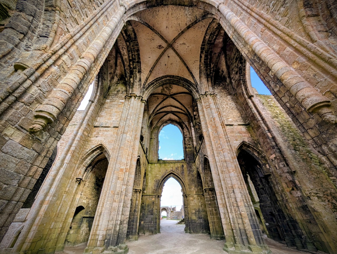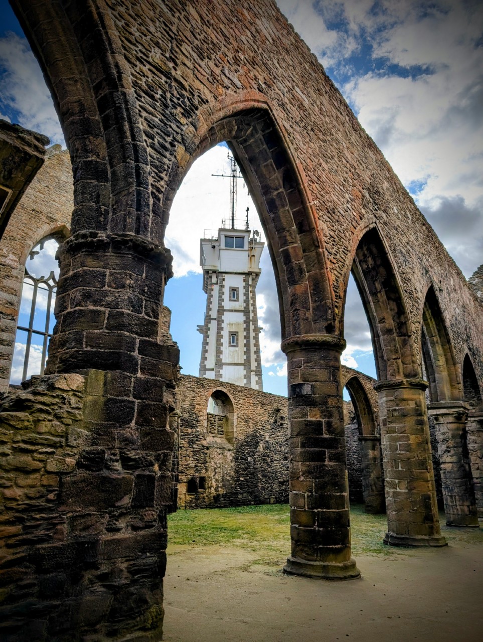 Et donc le mélange entre ce magnifique phare blanc et rouge, et cette construction gothique en ruine est super beau. L’église abbatiale propose de jolis restes avec quelques croisées d’ogive impressionnantes et qui donnent à imaginer d’un sanctuaire très imposant pour un lieu si reculé, mais apparemment prisé, du Moyen-Âge. Ce n’était clairement pas un petit truc dans son coin.