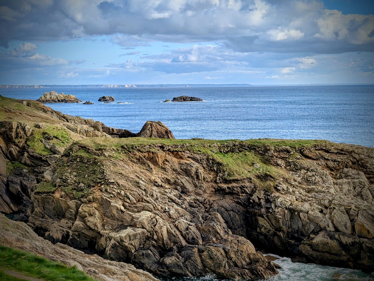 Le temps était plutôt clément, même si ça alternait avec de grosses masses nuageuses bien noires qui passaient sans trop s’arrêter (mais on a vu la pluie sur Ouessant en direct, alors qu’on était au soleil).