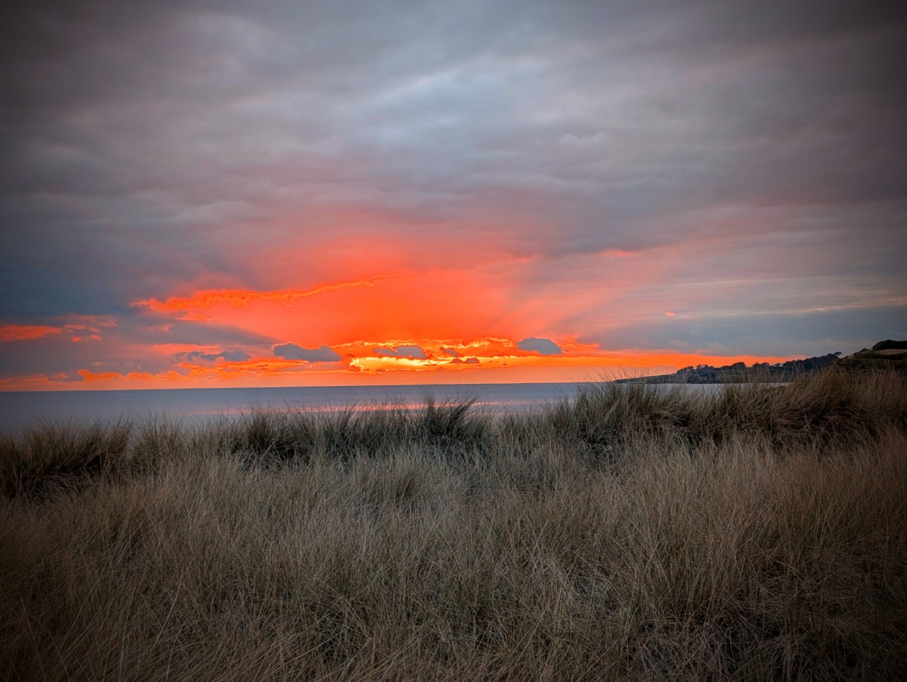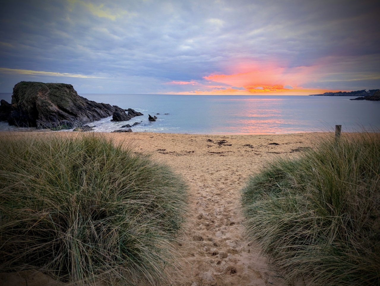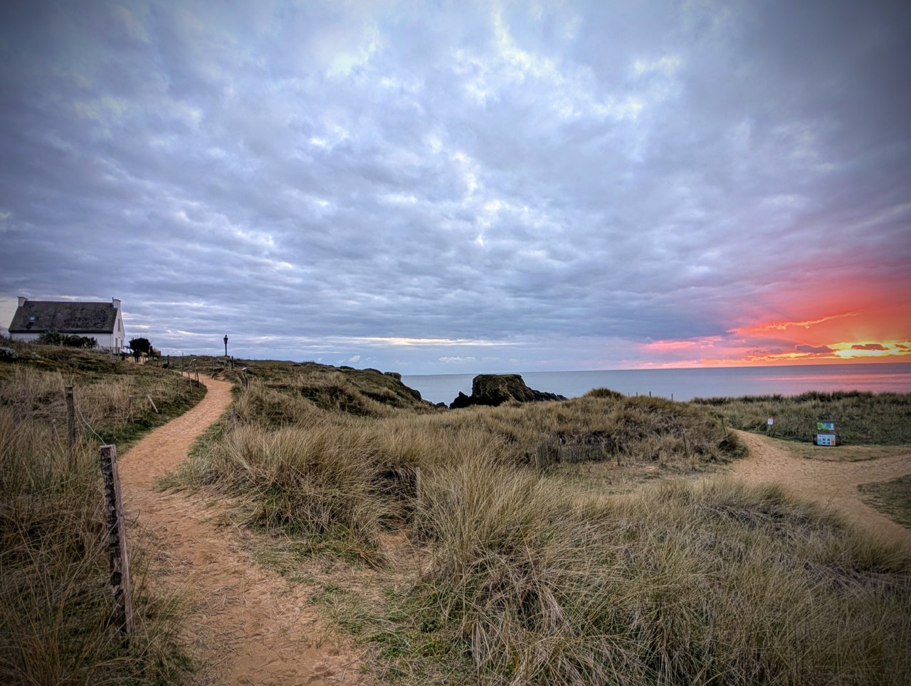 On est rentré à Clohars-Carnoët juste pour rater un très beau coucher de soleil, en réalité avorté, avec des couleurs incroyables mais qui ne rendent absolument pas en photo. Quelques minutes plus tôt, on avait encore des couleurs fauves qui irisaient l’ensemble du ciel bleu-violet, mais tant pis, ce sera pour une prochaine fois.