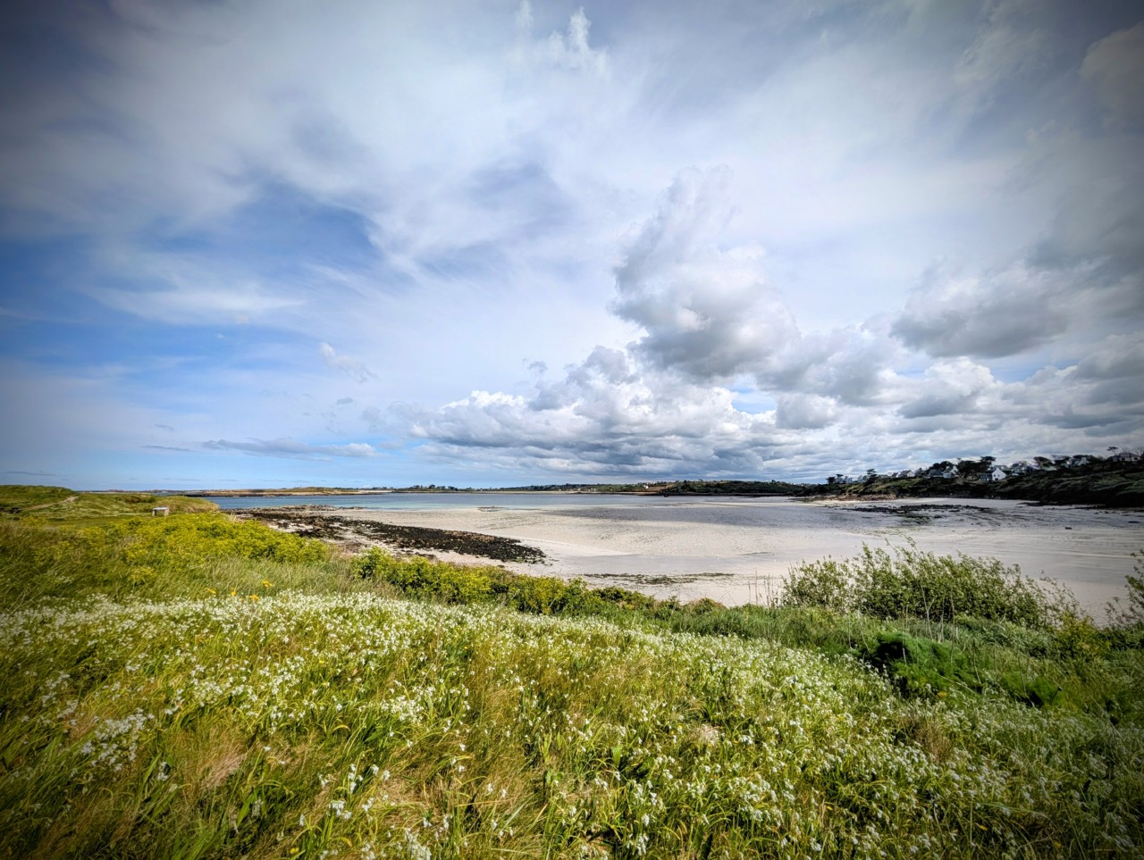 Avec un temps beaucoup plus clément l’Aber Wrac’h devient un petit paradis notamment à son embouchure avec les dunes Sainte-Marguerite et l’île Vierge (et son impressionnant phare de 82m, le plus haut du monde en pierres).