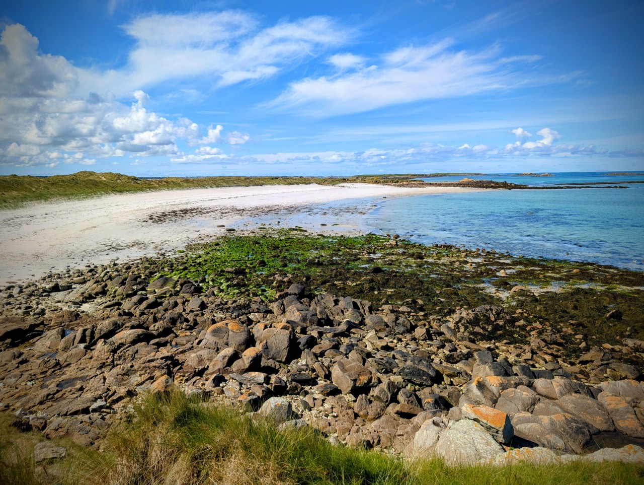 Avec un temps beaucoup plus clément l’Aber Wrac’h devient un petit paradis notamment à son embouchure avec les dunes Sainte-Marguerite et l’île Vierge (et son impressionnant phare de 82m, le plus haut du monde en pierres).