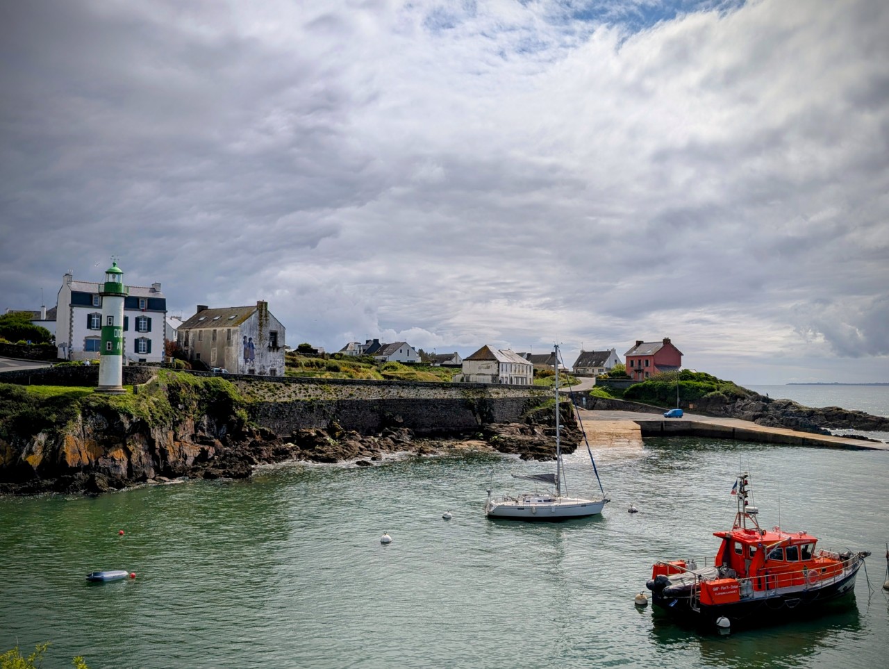 C’était marrant à Doëlan, car si on regarde à droite de l’île de Groix, le ciel est tout bleu et la lumière superbe. Et vers la gauche, le ciel se couvre avec une petite grisaille qui annoncerait plutôt de la flotte. Mais que nenni, c’était une journée avec une belle lumière et un temps fluctuant, qui ne nous donne de la pluie que depuis quelques minutes.
