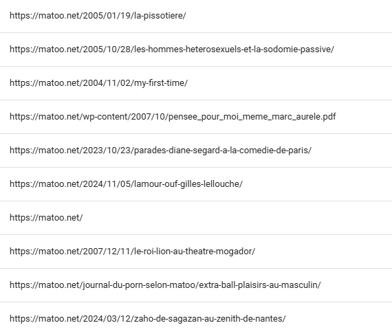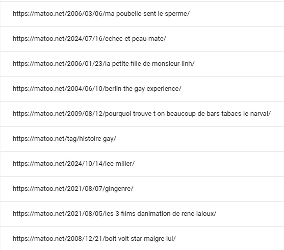 Sachant que je n’ai vraiment jamais écrit pour les référencements, ou parfois en effet pour titiller les lecteurs que je savais réguliers, j’ai toujours écrit des histoires ou anecdotes réelles, et les gens cherchent beaucoup des témoignages ou des « histoires gay » comme cela est également reflété dans cette liste. Je suis tout de même étonné que mon très célèbre post de 2003 (un énorme hit pendant une dizaine d’années) sur les Dieux du Stade ne soit plus dans cette liste, il semblerait que ce truc soit enfin oublié !!