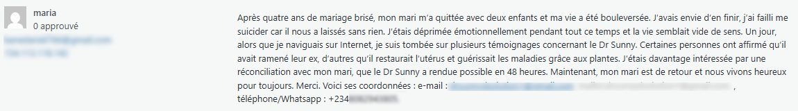 Je n’avais jamais remarqué que les marabouts, dont j’aimais tant les distributions de petits papiers aux sorties de métro, s’étaient reconvertis dans le spam des commentaires de blogs. En tout cas, c’est très efficace, maintenant sans faute d’orthographe, en direct du Nigéria ! Quel beau témoignage, ça donne envie !!