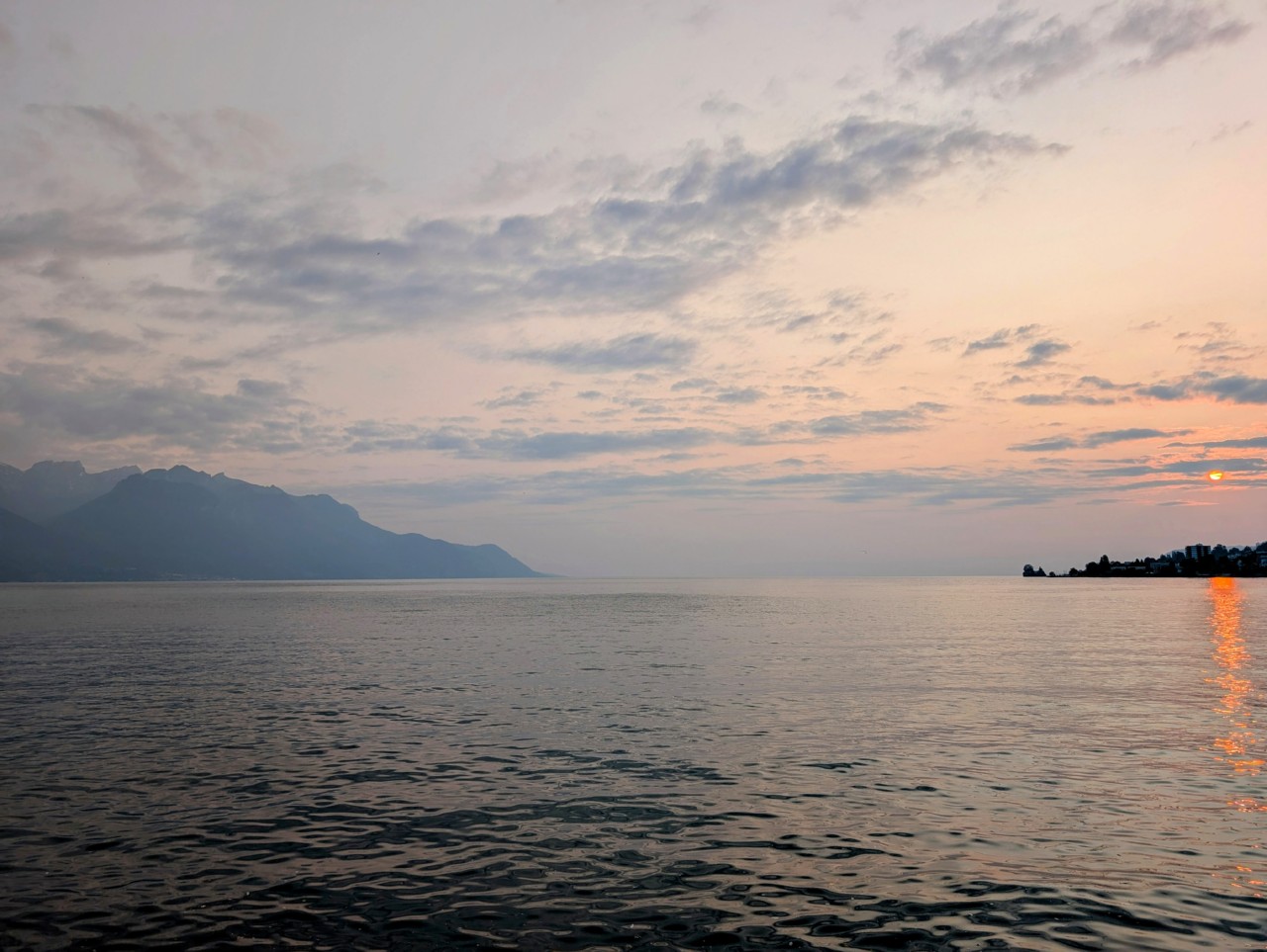 Pour parfaire notre courte visite suisse autour du Lac Léman, nous avons profité du coucher de soleil à Montreux. C’était hyper agréable de se promener sur ces quais avec une vue dégagée sur le lac Léman, mais aussi sur les alpes ( plus précisément les Préalpes vaudoises) et notamment le magnifique massif des Rochers de Naye.