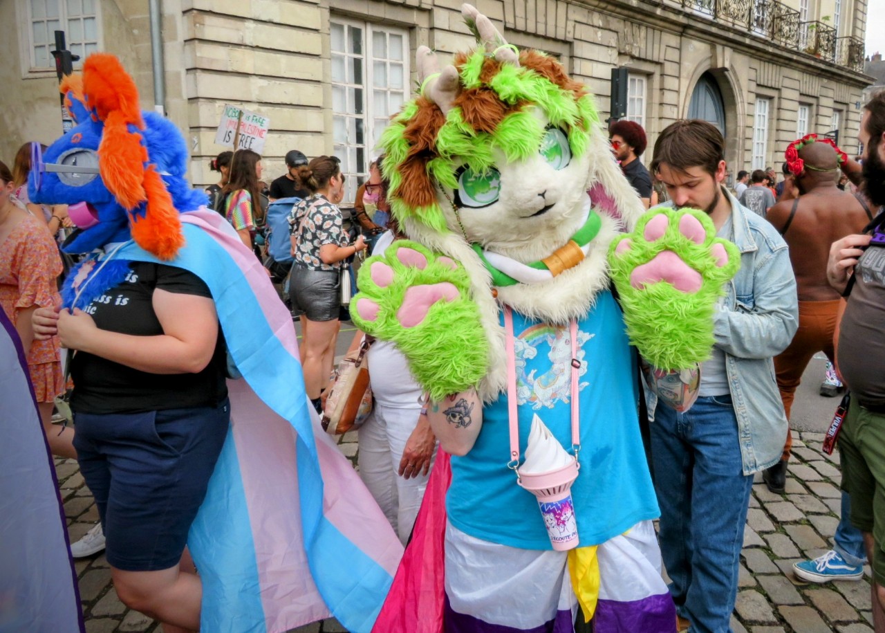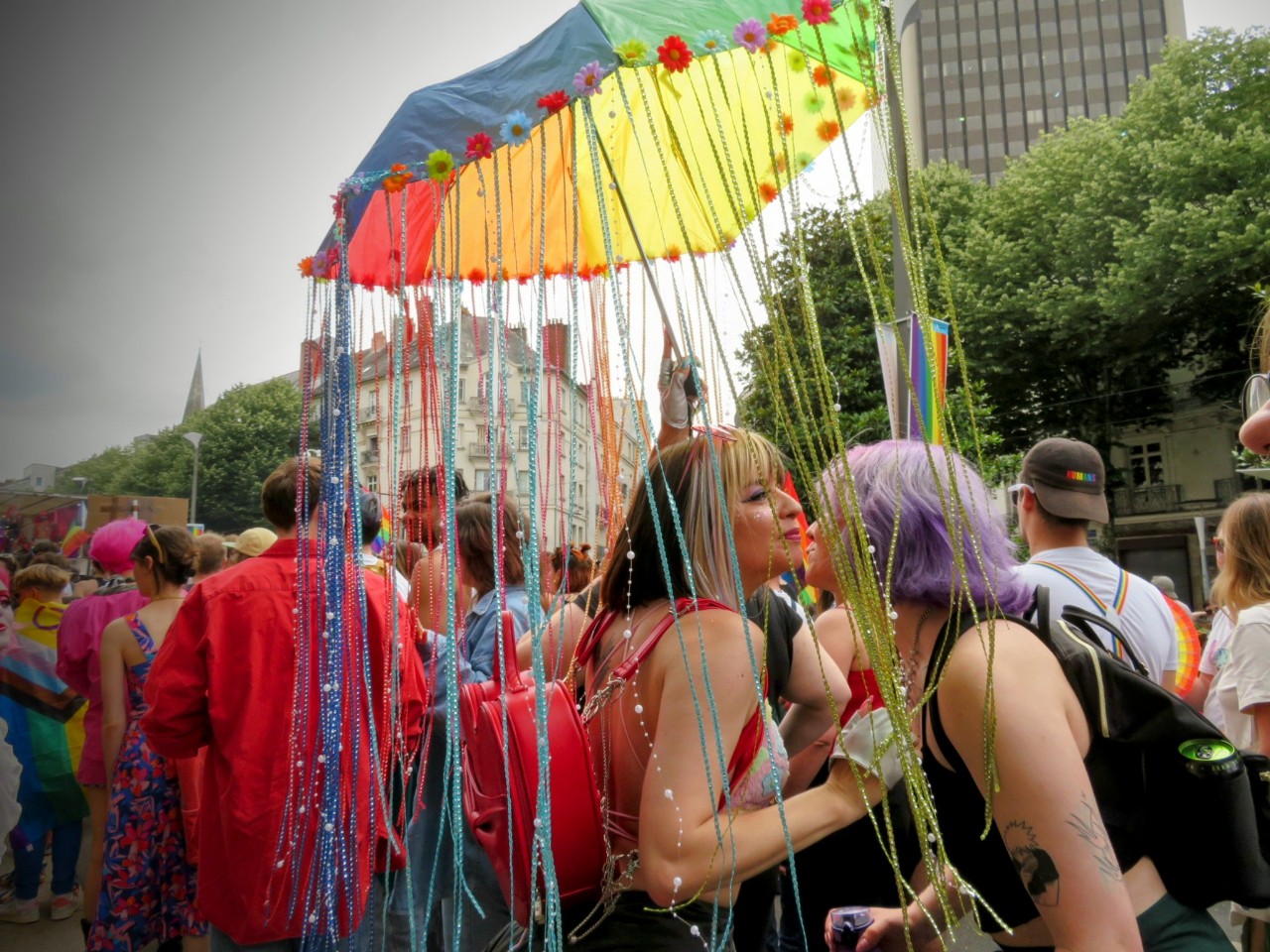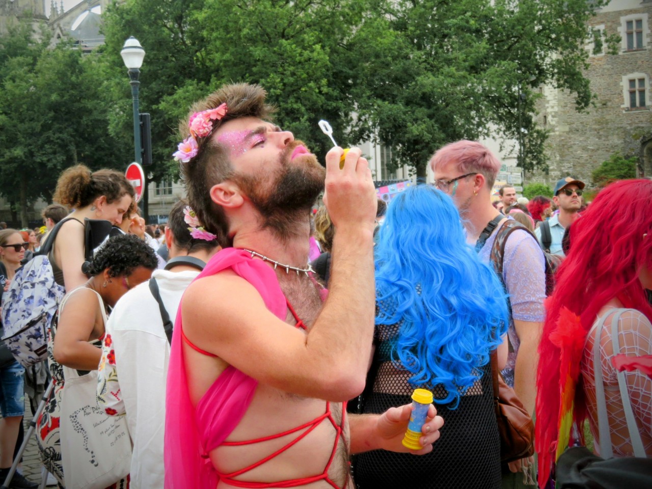 J’ai surtout retrouvé cette superbe ambiance nantaise hyper conviviale et sympathique des bonnes Prides. Absolument tous les gens croisés lors de cette marche étaient souriants, abordables et bienveillants. Il y avait ce qu’il fallait de revendications et de pancartes politiques, mais aussi des fétichistes de tous les genres, des créatures indéterminées et puis des tas de gens dans le spectre de l’humanité multicolore.