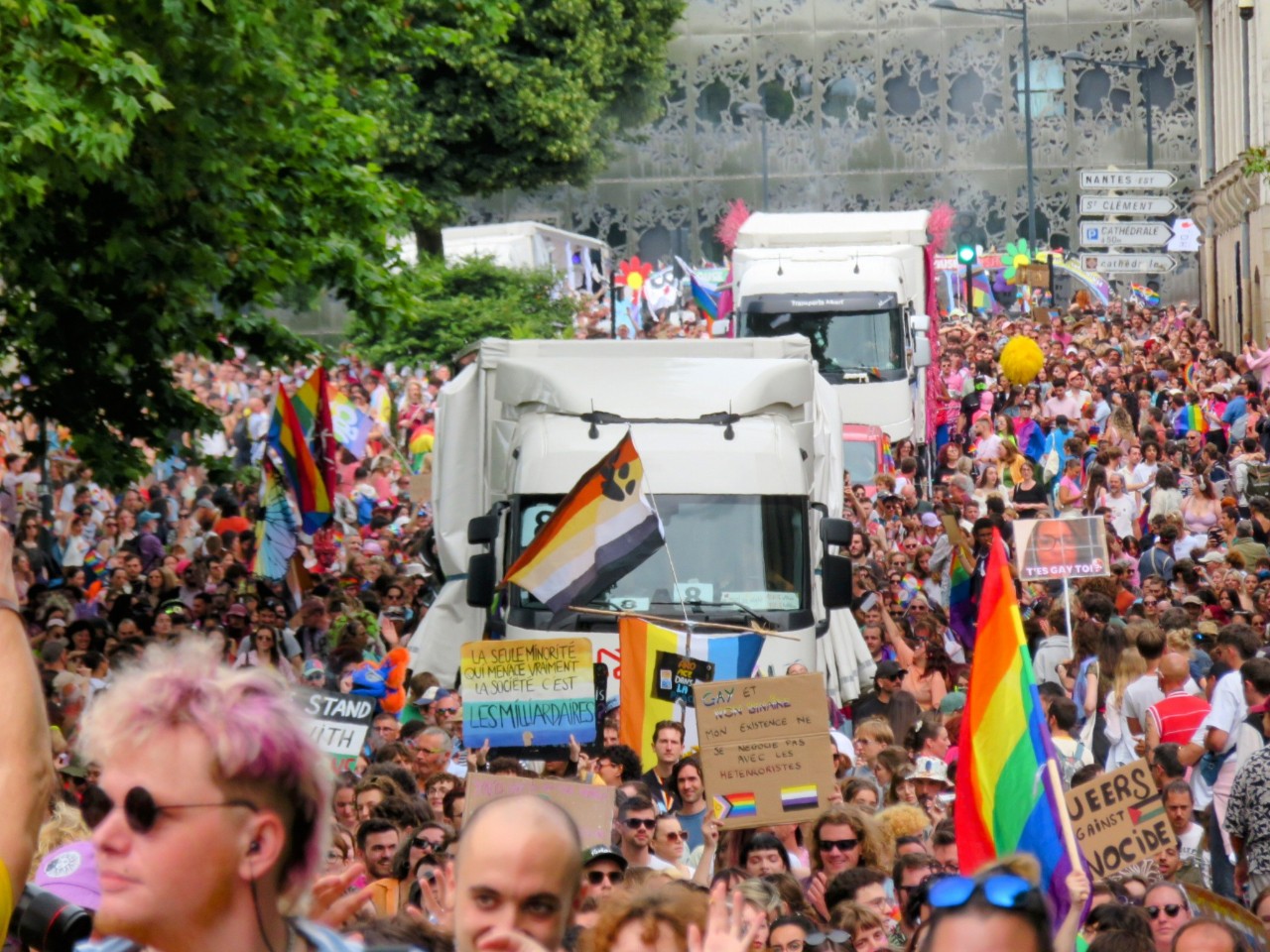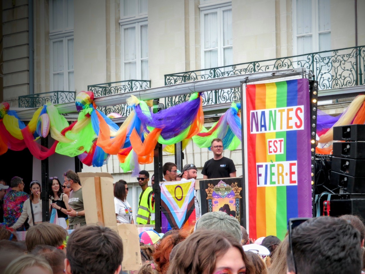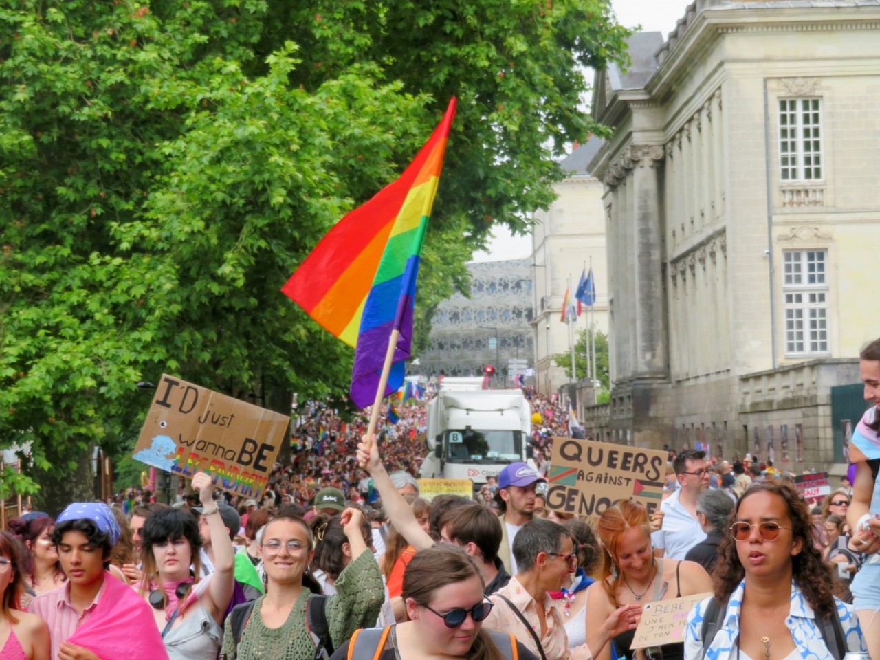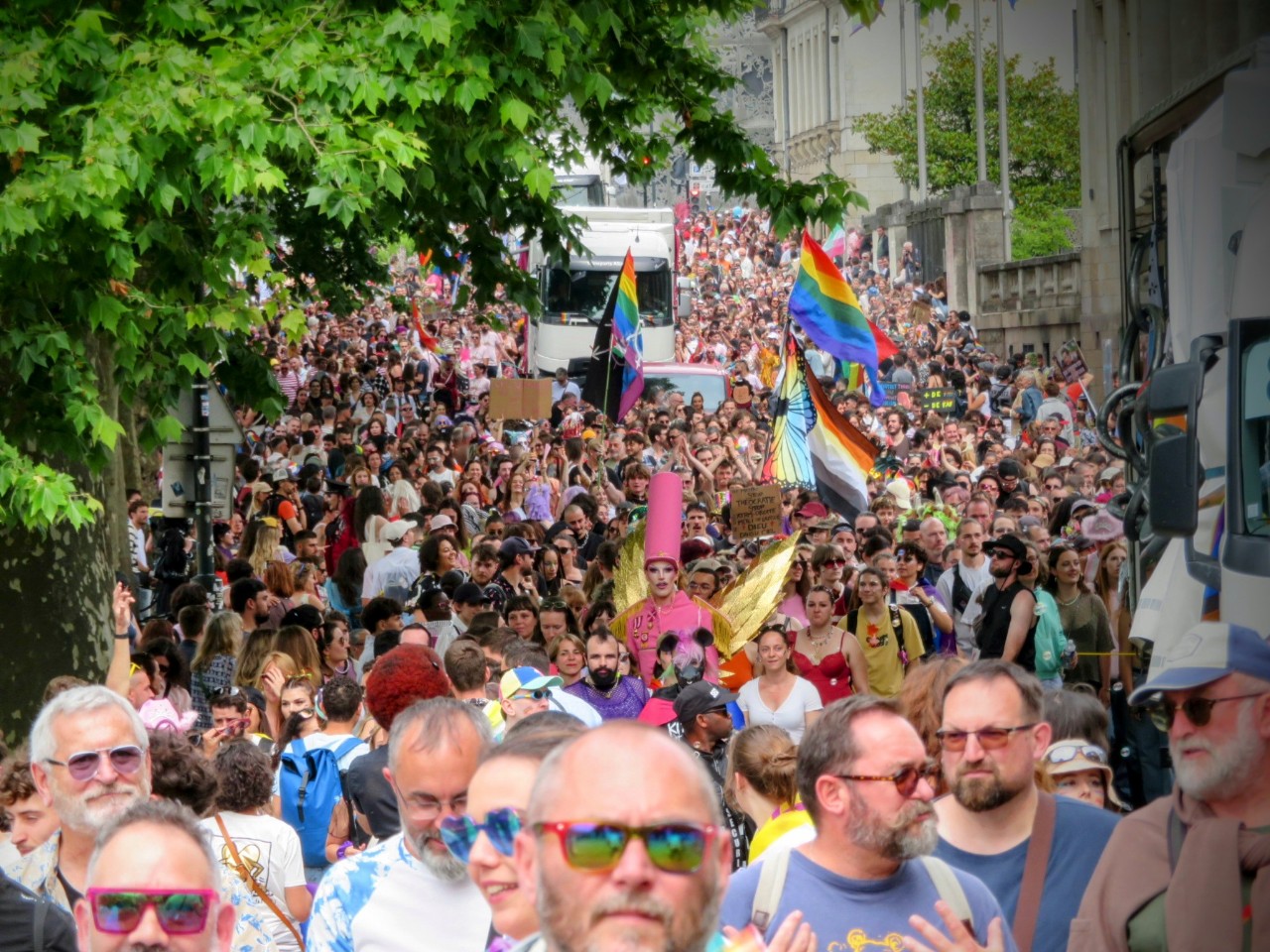 Après une année 2024 record, puisque c’était la seule année depuis 1997 où je n’avais assisté à aucune marche des fiertés, j’en suis déjà à ma deuxième cette année (après Genève la semaine dernière). Eh bien je peux affirmer que j’aime ça, et que ça fait drôlement du bien de renouer avec cette saine pratique annuelle. Cette session nantaise s’est déroulée sous les meilleurs augures avec un temps grisâtre, mais au moins pas trop chaud et sans risque d’insolation, et j’ai trouvé vraiment beaucoup de monde.