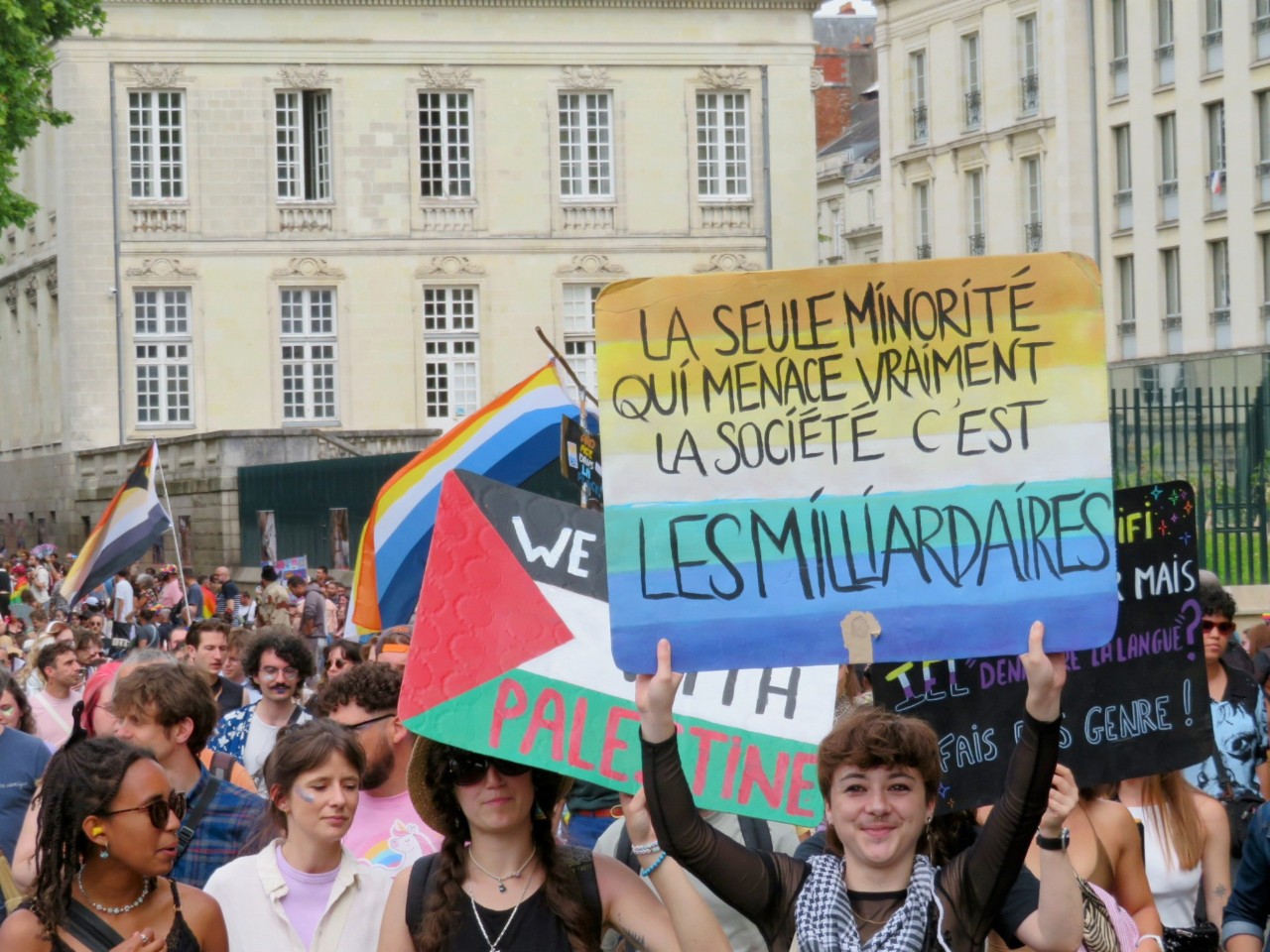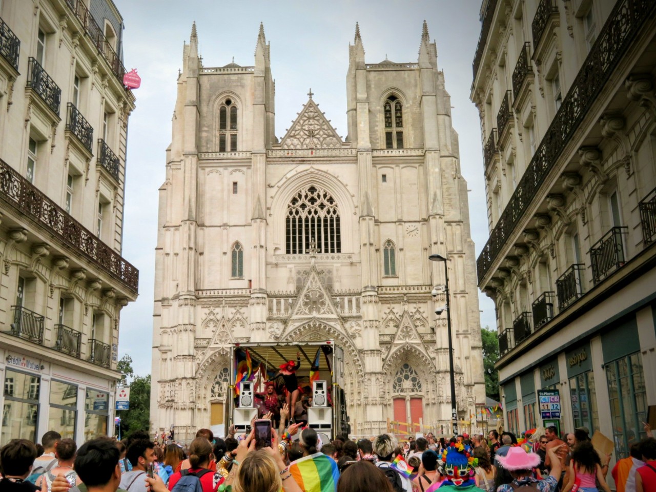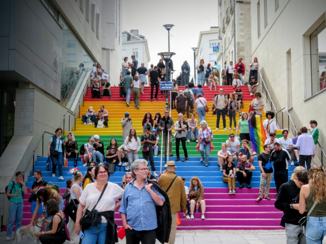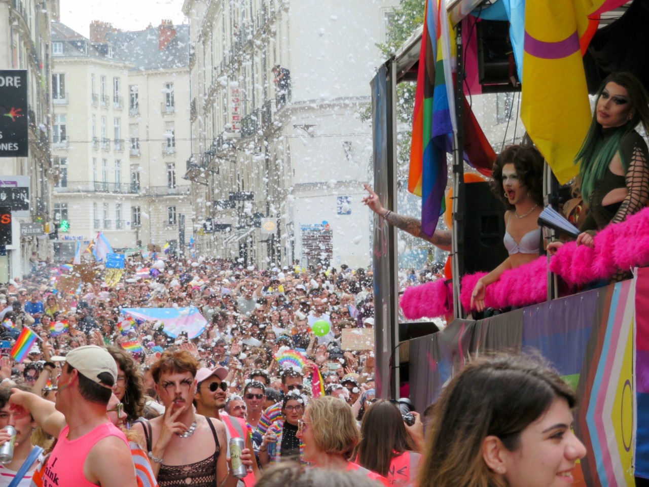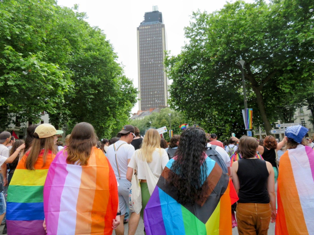 Après une année 2024 record, puisque c’était la seule année depuis 1997 où je n’avais assisté à aucune marche des fiertés, j’en suis déjà à ma deuxième cette année (après Genève la semaine dernière). Eh bien je peux affirmer que j’aime ça, et que ça fait drôlement du bien de renouer avec cette saine pratique annuelle. Cette session nantaise s’est déroulée sous les meilleurs augures avec un temps grisâtre, mais au moins pas trop chaud et sans risque d’insolation, et j’ai trouvé vraiment beaucoup de monde.
