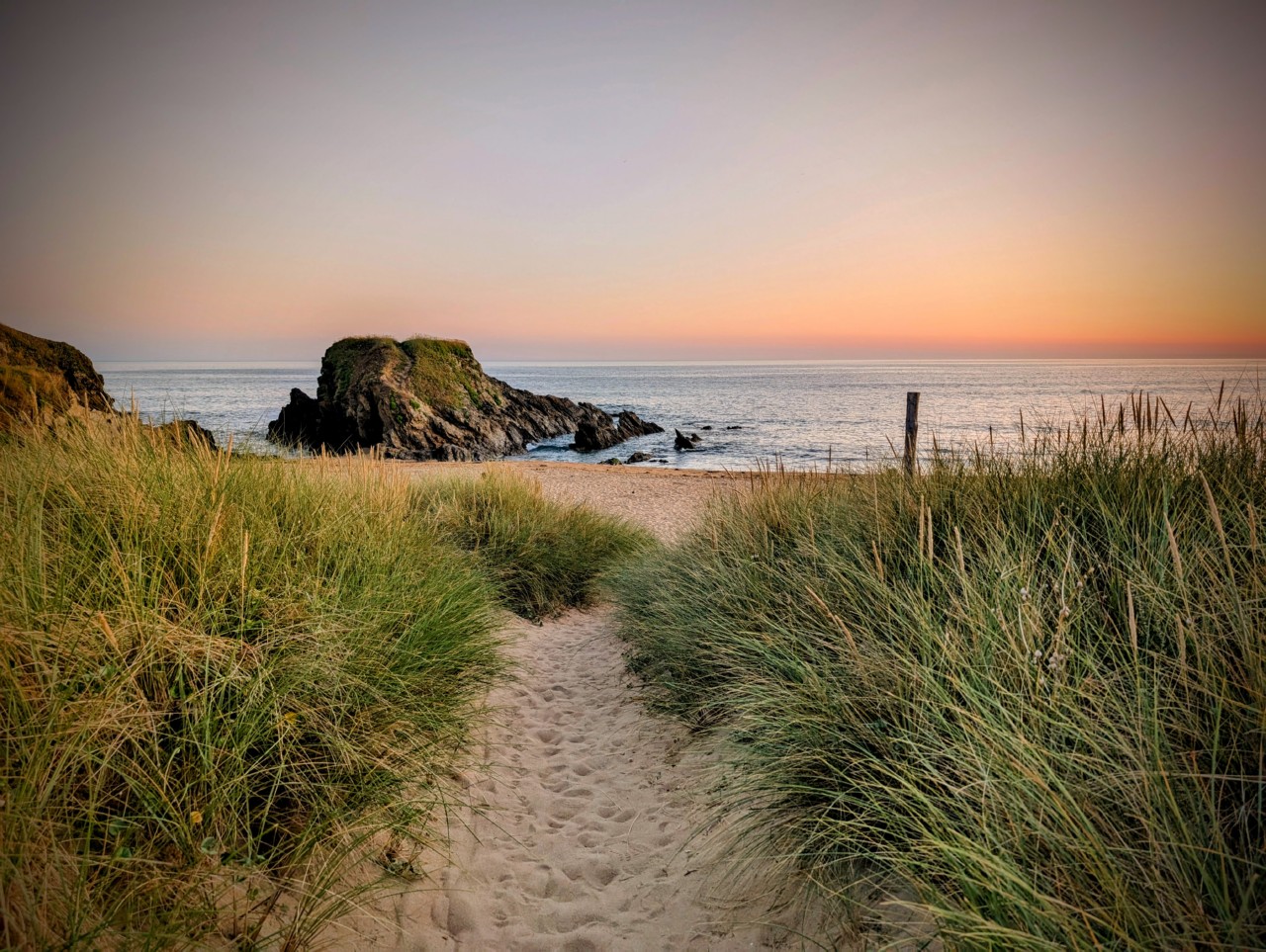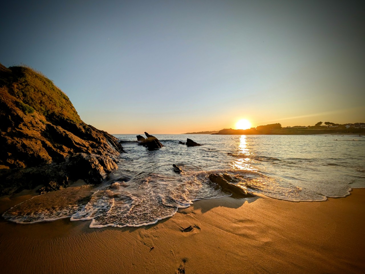 • C’est un peu compliqué pour moi d’aller au bord de l’eau en soirée, mais je me suis baignée ce matin (à marée haute) et ce fut un pur délice. Quelle chance nous avons de vivre au bout du monde!