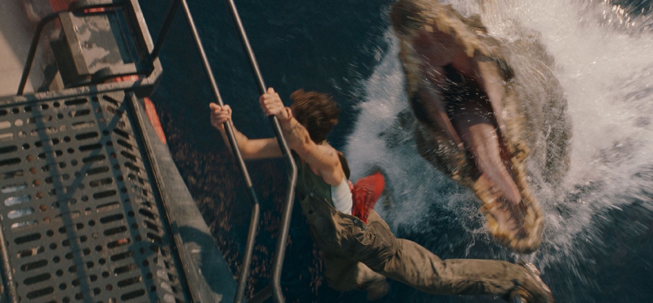 Mais le plus décevant pour moi c’était ces décors complètement fake du début à la fin. J’ai l’impression que l’ensemble des plans qui semblent en décors naturels sont des images de synthèse, et encore une fois avec cette facture « jeu vidéo » qui rend tout cela très très carton-pâte. Et certaines scènes sont très très laides lorsqu’on voit clairement le fond vert dans le jeu des comédiens (qui ne bougent pas d’un iota sur un bateau secoué par un mosasaure) ou dans un premier plan qui rappelle l’émission de la 5 en route pour l’aventure avec Michel Robbe.