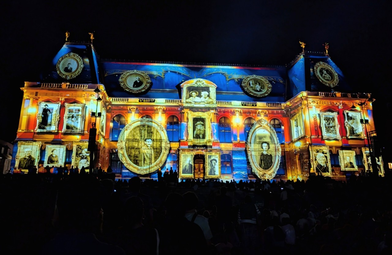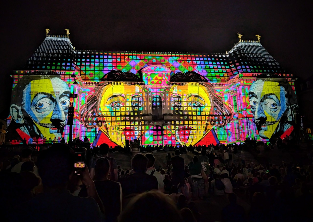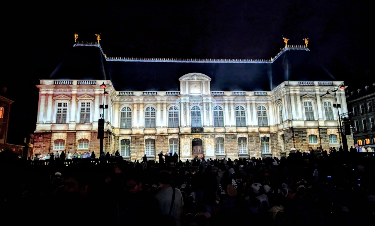 Et hier soir, on est sorti voir la dernière projection de l’été d’un show de « vidéo mapping » sur le Parlement de Bretagne. C’était très sympa, avec une musique très enlevé et des évocations très universelles et chatoyantes. Assez différent des spectacles quimpérois qui font la part belle à l’histoire locale et les fiertés bretonnantes.