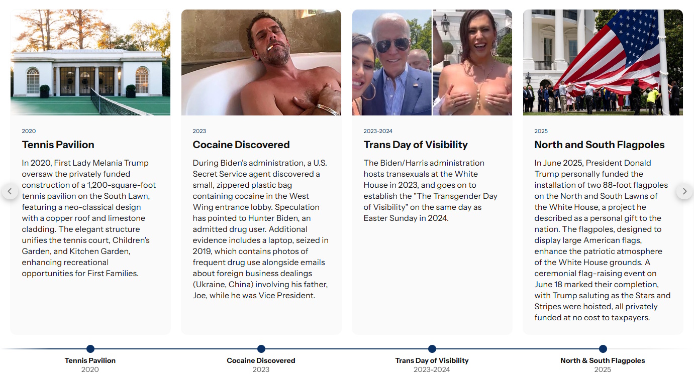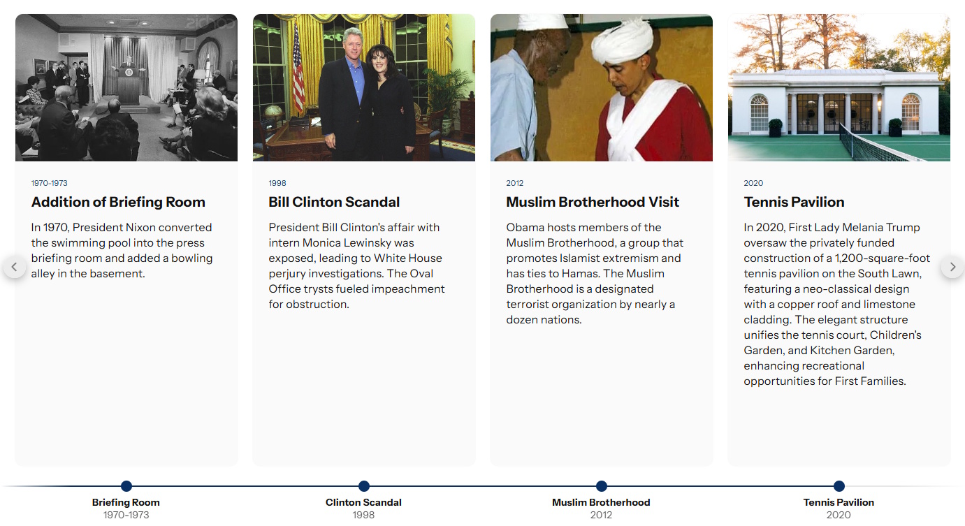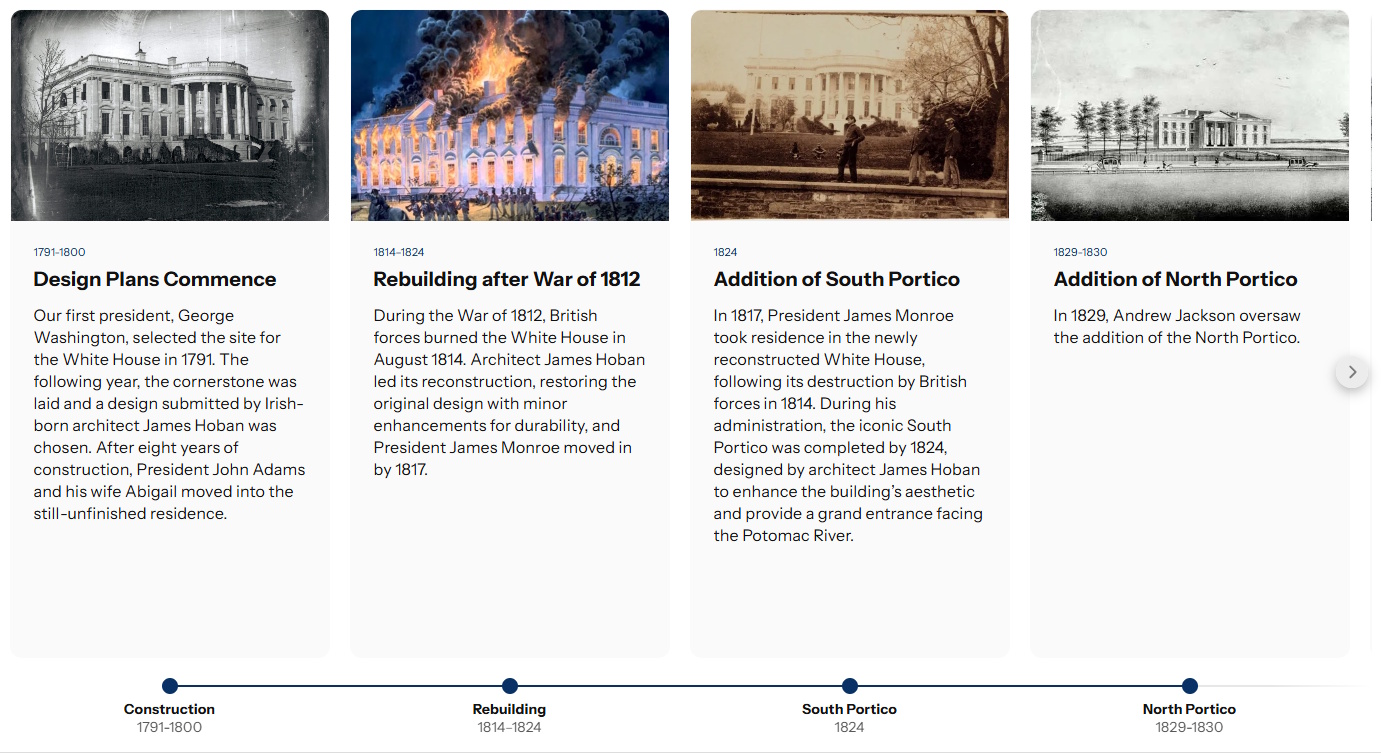 Le contrôle et la mystification de l’information est une stratégie claire et effective de l’administration Trump aux US, et je parlai il y a quelques mois du bruits des bottes à ce sujet, avec notamment cette invisibilisation terrible et inique des LGBT dans les sites officiels américains, y compris le Stonewall. Mais là, c’est encore au-delà de mon entendement… Le site web de la Maison Banche a en effet mis à jour une frise historique qui explique les évolutions du bâtiment depuis le début de sa construction en 1791.