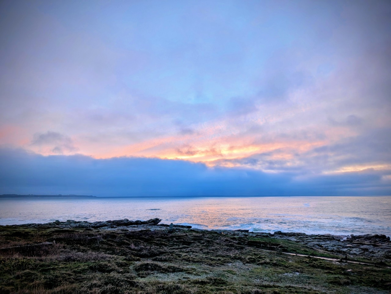 Et là c’était une journée entre grisailles, crachin et éclaircies, mais à Kerroc’h avec la fin de la journée, tous ces nuages, et une mer bien remuée, l’ambiance était sublime. Les couleurs n’ont pas arrêté de changer, et même s’il n’y a pas eu de coucher de soleil et que c’était principalement de la brume, bah c’était super beau.