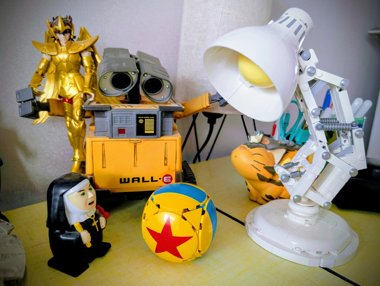 C’est le bébé lampe articulée avec sa balle jaune et l’étoile rouge !!!! cela est parfaitement assorti à Wall-E et mon angry nun (si si).