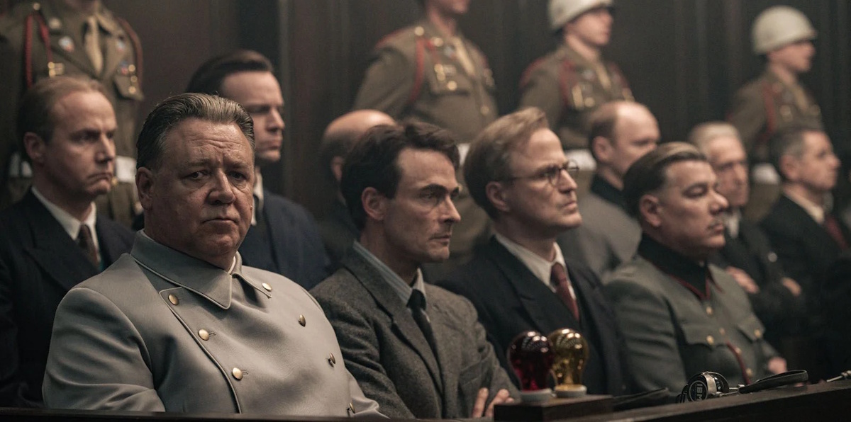 Et ensuite, l’histoire en tant que telle est tellement géniale, que ça fait un excellent scénario. On suit (un peu trop rapidement) les pours et contres du procès, et notamment une intéressante visite auprès du Pape pour essayer de le convaincre du bien-fondé de la démarche (le monde entier voulait qu’on élimine ces personnes sans aucune forme de procès). Mais l’intrigue majeure du film c’est Rami Malek qui joue le psychiatre (Douglas Kelley) qui à l’aide d’un traducteur, Leo Woodall (qui joue Howie Triest, dont l’histoire est aussi fascinante per se), est missionné pour analyser les psychés de ces officiers, et les empêcher de se suicider avant l’issue du procès. Ses entretiens avec Hermann Göring vont faire se rapprocher les deux hommes dans un chassé-croisé assez improbable où on se demande sans arrêt qui se joue de qui.