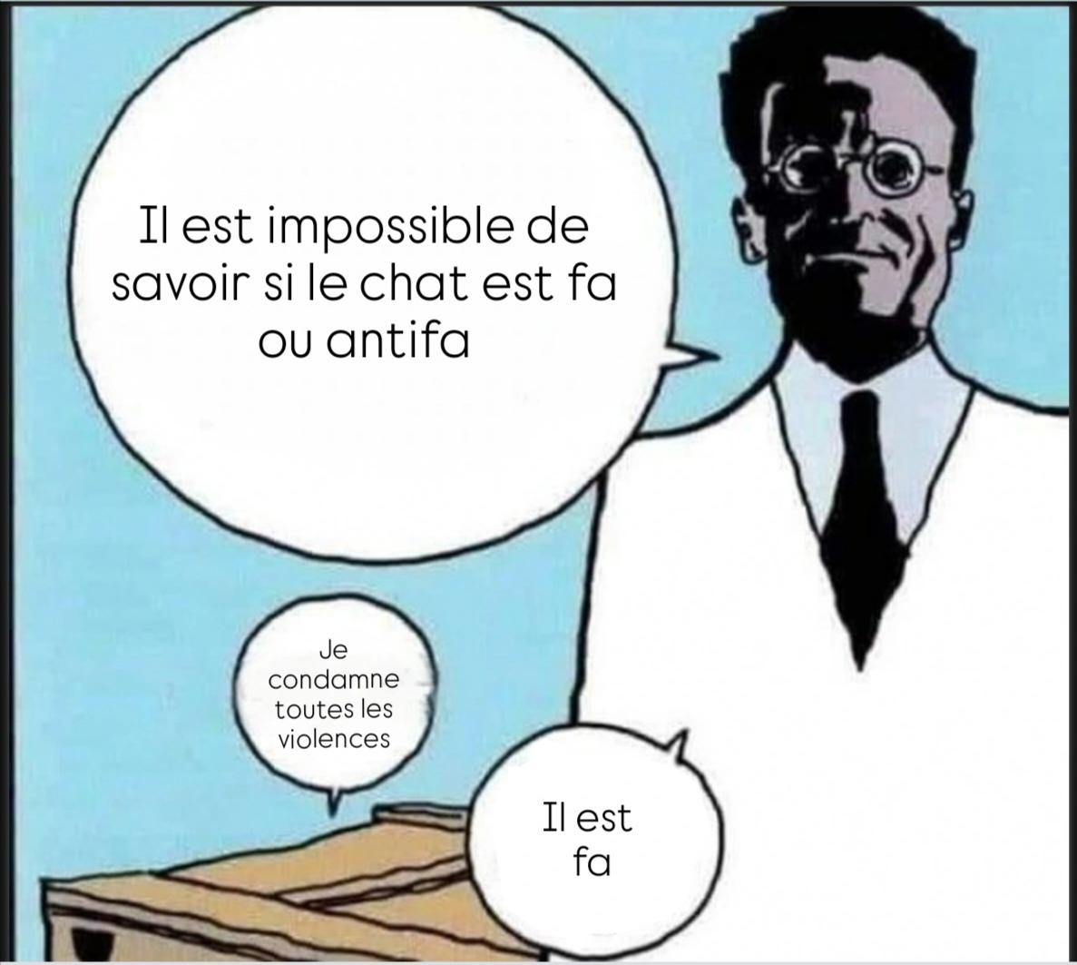 Tout cela enfle d’autant plus depuis la mort de ce jeune militant d’extrême droite. Si la mort d’un gamin de 23 ans est toujours à déplorer, on ne sait encore rien des circonstances exactes de cette dernière. Et sachant qu’il s’agissait d’une manifestation contre LFI, et qu’il faisait partie du service d’ordre, je ne peux m’empêcher de penser à la surréaliste intimidation que nous avions subi lors d’un rassemblement contre la transphobie en 2024. Et donc je suis plutôt enclin à être du côté des ninjas antifas que des réacs France moisie.