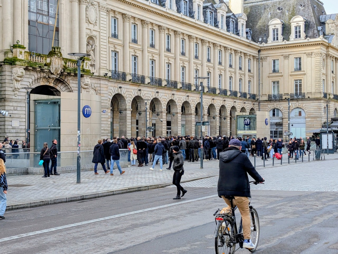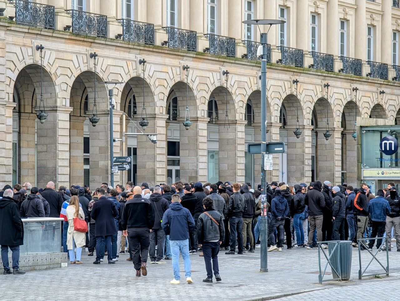 M. était en visite à Rennes avec son copain ce week-end, et donc on a fait un grand tour du centre de la vieille ville pour leur faire visiter. Je n’avais pas percuté sur le fait qu’on avait droit dans notre bonne ville de Rennes à une manifestation en mémoire du jeune homme d’extrême-droite qui est décédé. Mais comment est-ce possible à Rennes ???? C’est un bastion des antifas comme peut l’être Nantes, c’est presque de la provocation de venir là pour ce genre de démonstration. Et donc on pouvait s’attendre à une rencontre du type O.K. Corral… On est tombé en faisant notre balade sur le petit groupe fasciste qui manifestait donc à République.