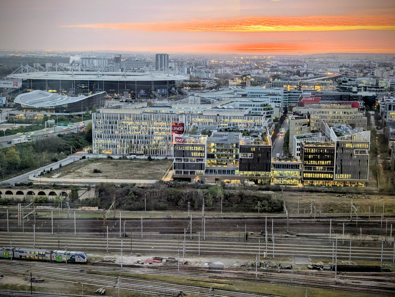J’ai eu les trois derniers jours en région parisienne pour le boulot, et j’ai repassé deux nuits dans la Tour Pleyel, mais avec une nouvelle vue. Plein feux sur le boulot et le stade de France cette fois !