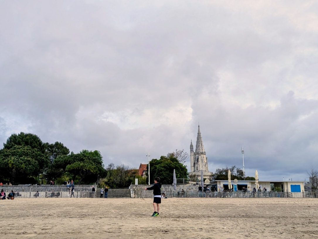 En se promenant sur le port, on a poussé sur l’extérieur des remparts et la petite plage de la Concurrence. Car vous me connaissez, j’ai toujours des idées derrière la tête. Et j’avais clairement bien en tête une ancienne photo que j’avais récupérée d’une pochette de négatifs antédiluviens de mes grands-parents paternels. On voyait ma grand-mère en maillot de bain à la plage avec en arrière-plan la Tour de la Lanterne de La Rochelle (très reconnaissable car vraiment emblématique du lieu).