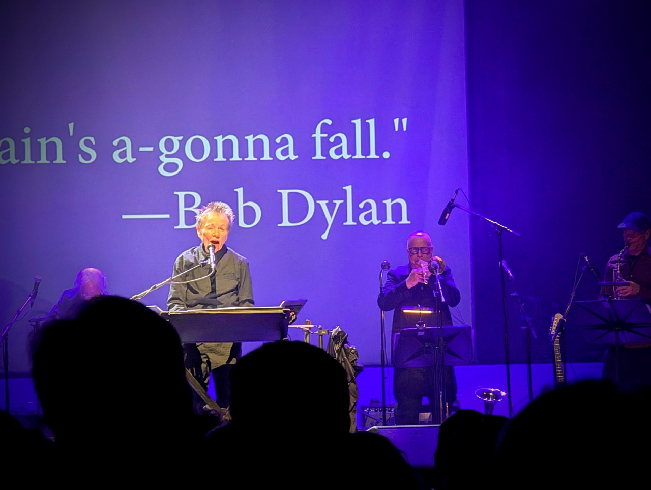 Elle est très connue pour utiliser sa voix et scander beaucoup de textes, un peu comme du slam quelque part mais bien avant l’heure. Je la connaissais depuis des années, surtout à travers ses collaborations avec mon cher Philip Glass, mais c’est mon mari qui a surtout ces derniers temps creusé ses productions, et qui est complètement devenu fan. Elle présentait là un concert mais pas dans une forme traditionnelle, Laurie Anderson est sur scène avec quelques musiciens de jazz ultra talentueux, et elle raconte des histoires, elle raconte des chansons et elle mêle tout cela avec de l’image et du son. Elle maîtrise absolument tout elle-même avec dextérité depuis une console, tout en chantant et jouant du violon.