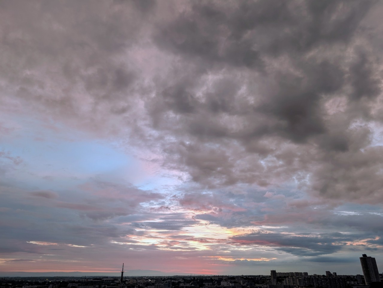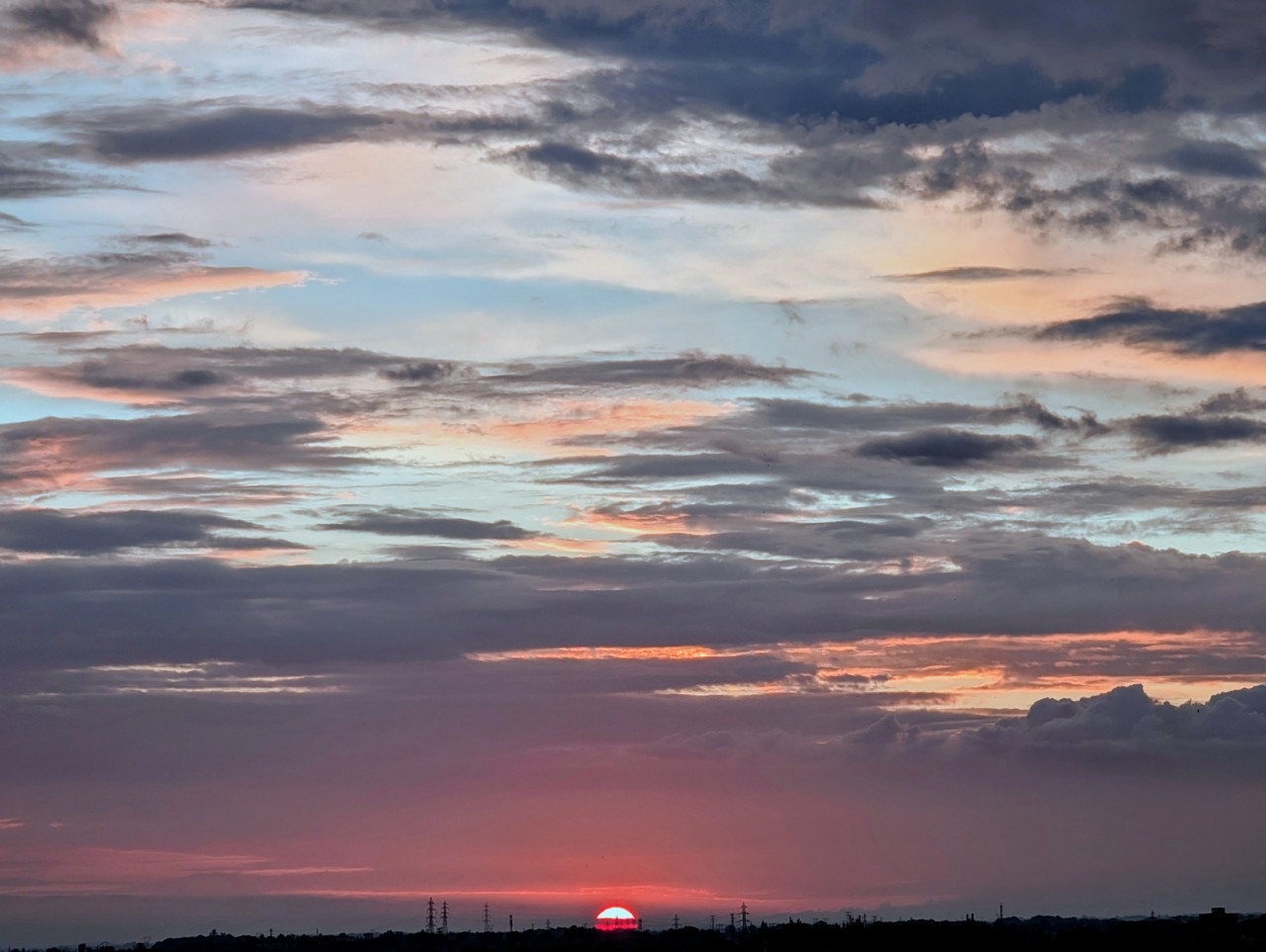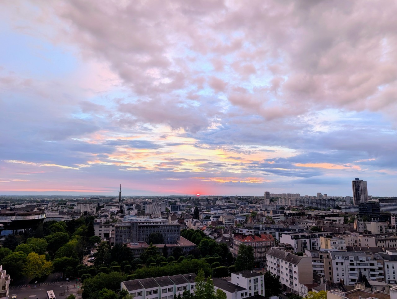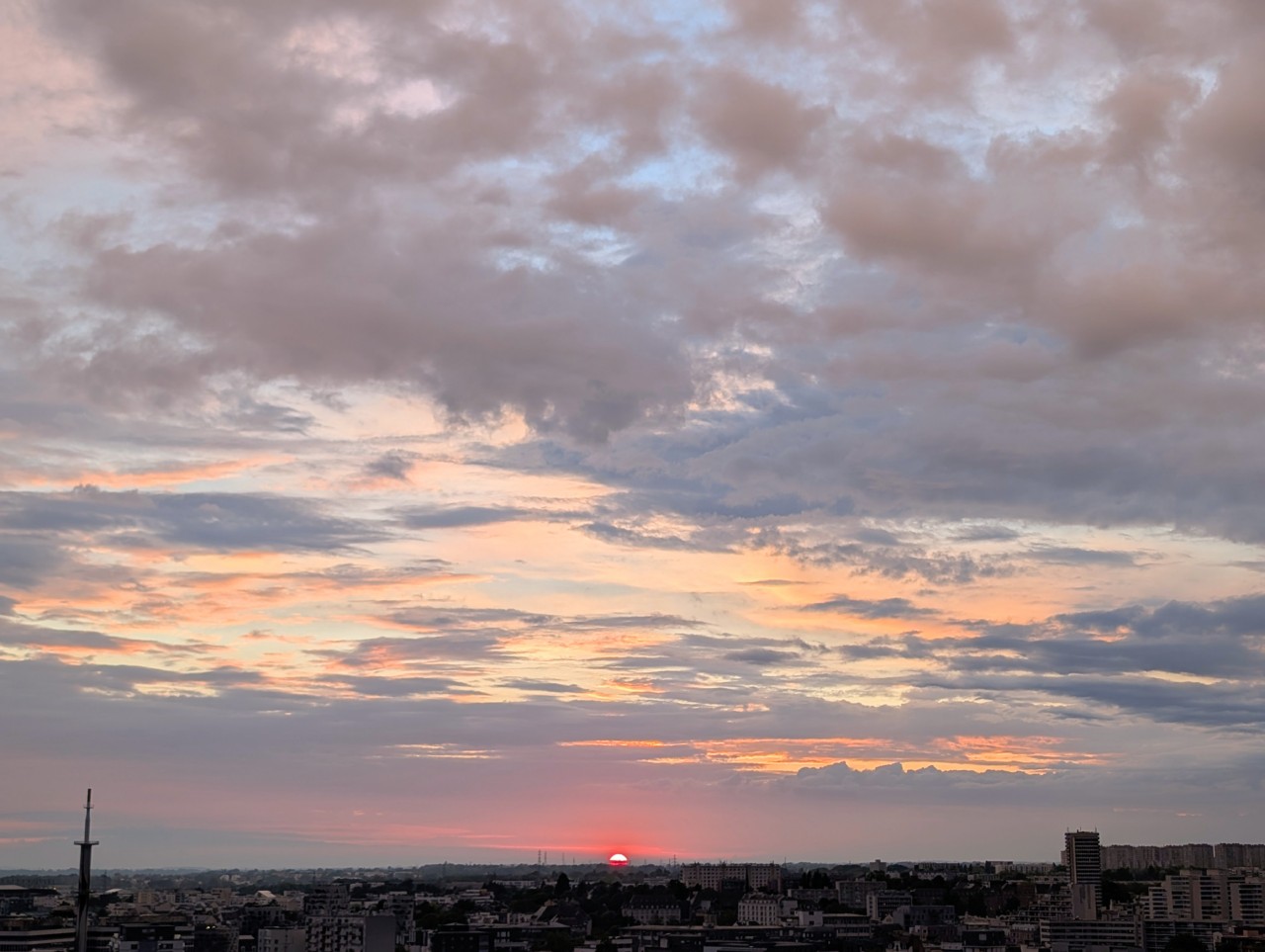 Malgré tout un beau ciel tourmenté, tumultueux et coloré, et un soleil timide qui a laissé derrière lui des teintes impressionnistes, délicatement ourlées de roses et de gris.