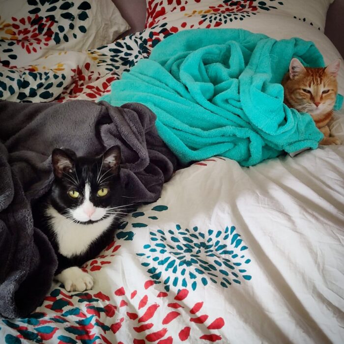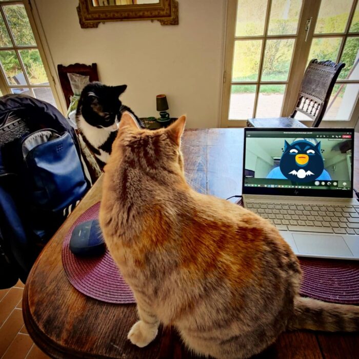 Le bureau s’est agrandi, et il a gagné en vue panoramique, les chattes ont l’air d’apprécier leur nouvel environnement de ronronnage. Je plussoie