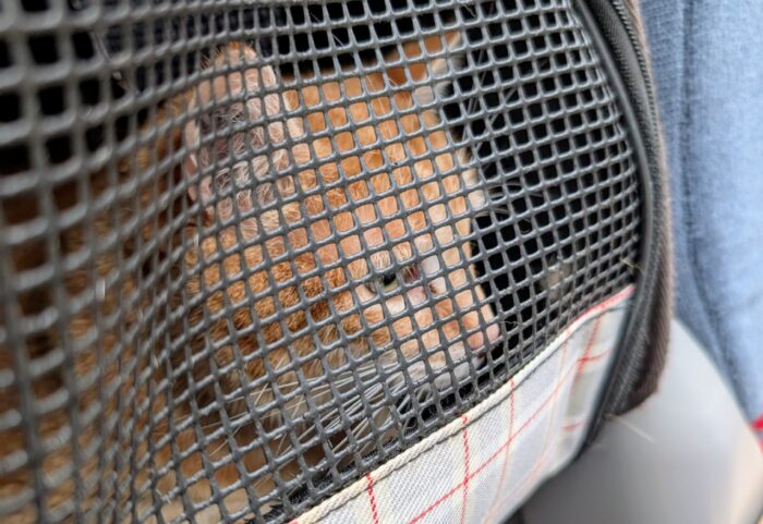 Regardez-moi cette petite malheureuse !! Et c’était un parcours très stressant pour elle avec le tramway, puis la gare et enfin le TER, puis la voiture jusqu’ à la maison. Mais...